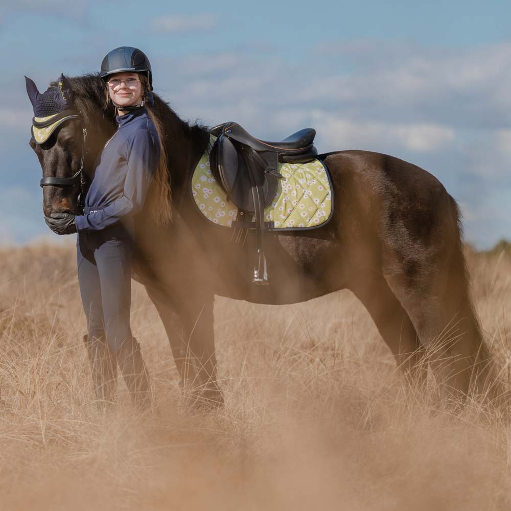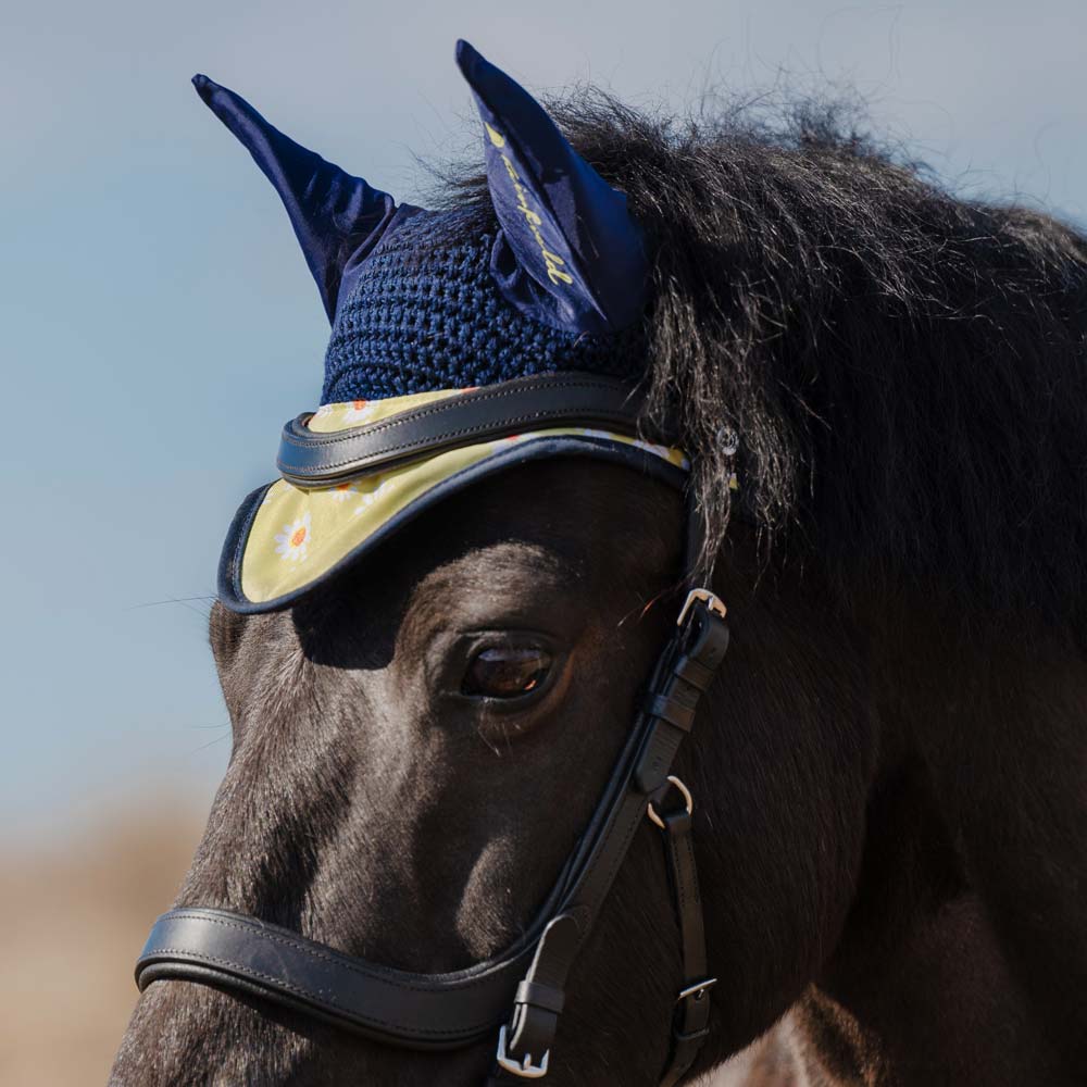 Gehaakt masker van katoen met elastische oren. Fairfield-logo op één oor. Past bij sjabrak uit dezelfde reeks.