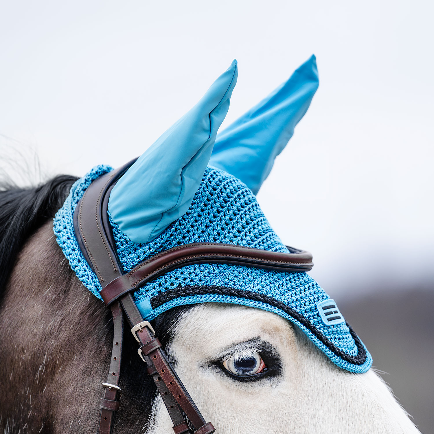 Gehaakte capuchon van glanzend nylongaren. Elastische oren voor een goede pasvorm. Gaatjes voor een kinband zorgen ervoor dat de capuchon goed blijft zitten. Geborduurd Fairfield-logo van lurexdraad en gevlochten lurexbies.