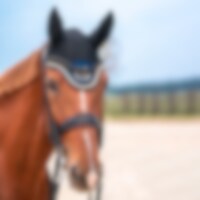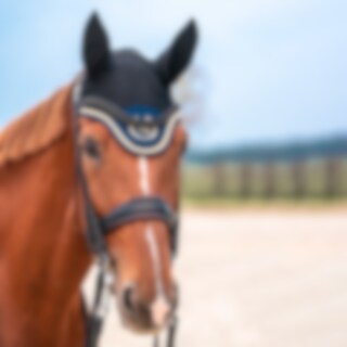Paardenmuts uit de Back on Track Night Collection. Gemaakt van comfortabel, geventileerd polyester mesh. Elastische stof van elastaan die goed over de oren past. Gevoerd over nek en voorhoofd met Welltex, het gepatenteerde materiaal van Back on Track. Dit