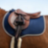 Stevig zadeldek met buitenzijde van polyester/katoenen keperstof. Binnenkant van 100% polyester Coolmax dat vocht van het paard afvoert. Stabiele vulling van 700 g polyester die ervoor zorgt dat het zadeldek stevig blijft liggen en de vorm behoudt, ook na vele wasbeurten. Gestreepte rand. Uitstekend geschikt voor borduurwerk.
