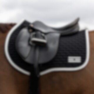 Sjabrak met quiltpatroon met slijtvaste polyester keperstof aan de buitenzijde. Sterk combinatiekussen in 300g polyfill + 1cm schuim zorgt voor een stevig zadeldek dat zijn vorm behoudt en op zijn plaats blijft. Binnenzijde van 100% polyester, functioneel materiaal dat bijdraagt aan het afvoeren van vocht van het paard.
