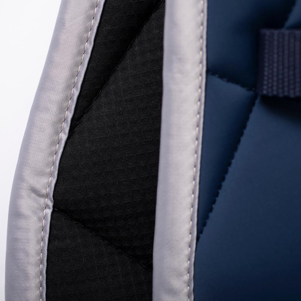 Deken met klassieke quiltruit van soepel en flexibel nylon spandex, wat een vuilafstotend oppervlak geeft. Behoudt kleur en vorm, ook na vele wasbeurten. Stabiele combinatievulling van 500 g polyester + 0,8 mm schuim geeft een schokabsorberend effect en zorgt ervoor dat de deken zijn vorm behoudt. Binnenzijde van katoen met wafelpatroon die een luchtlaag vormt zodat zweet sneller droogt. Brede rand van mat satijn. JH-logo.
