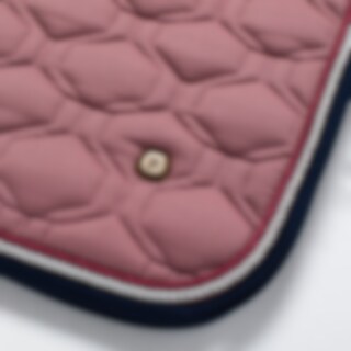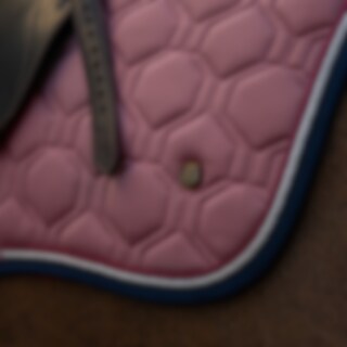 Zadeldek met quiltpatroon van slijtvast polyester/katoenen keperstof aan de buitenzijde. Sterke combinatievulling van 300 g polyfill + 1 cm schuim zorgt voor een stevig sjabrak dat de vorm behoudt en goed blijft liggen. Binnenzijde van 100% polyester, functioneel materiaal dat bijdraagt aan het afvoeren van vocht van het paard. Teddyvoering bij de nek om schuren te voorkomen en een paneel van 3D-mesh langs de ruggengraat voor extra ventilatie. Versteviging bij de zadelriem voor extra slijtvastheid en korte banden voor bevestiging aan de D-ring van het zadel zorgen ervoor dat het sjabrak bij de meeste zadels past. Versierd met twee zijden biezen en metalen logo.