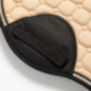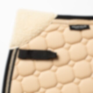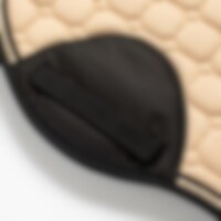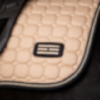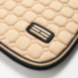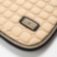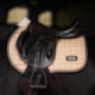Gewatteerd zadelkleed met buitenzijde van slijtvaste, katoenen keperstof, sterke combinatievulling van 300 g polyfill + 1 cm schuim waardoor het zadelkleed de vorm behoudt en goed blijft liggen, binnenzijde van 100% polyester functioneel materiaal dat voc