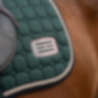 Gewatteerd zadelkleed met buitenzijde van slijtvaste, katoenen keperstof, sterke combinatievulling van 300 g polyfill + 1 cm schuim waardoor het zadelkleed de vorm behoudt en goed blijft liggen, binnenzijde van 100% polyester functioneel materiaal dat voc