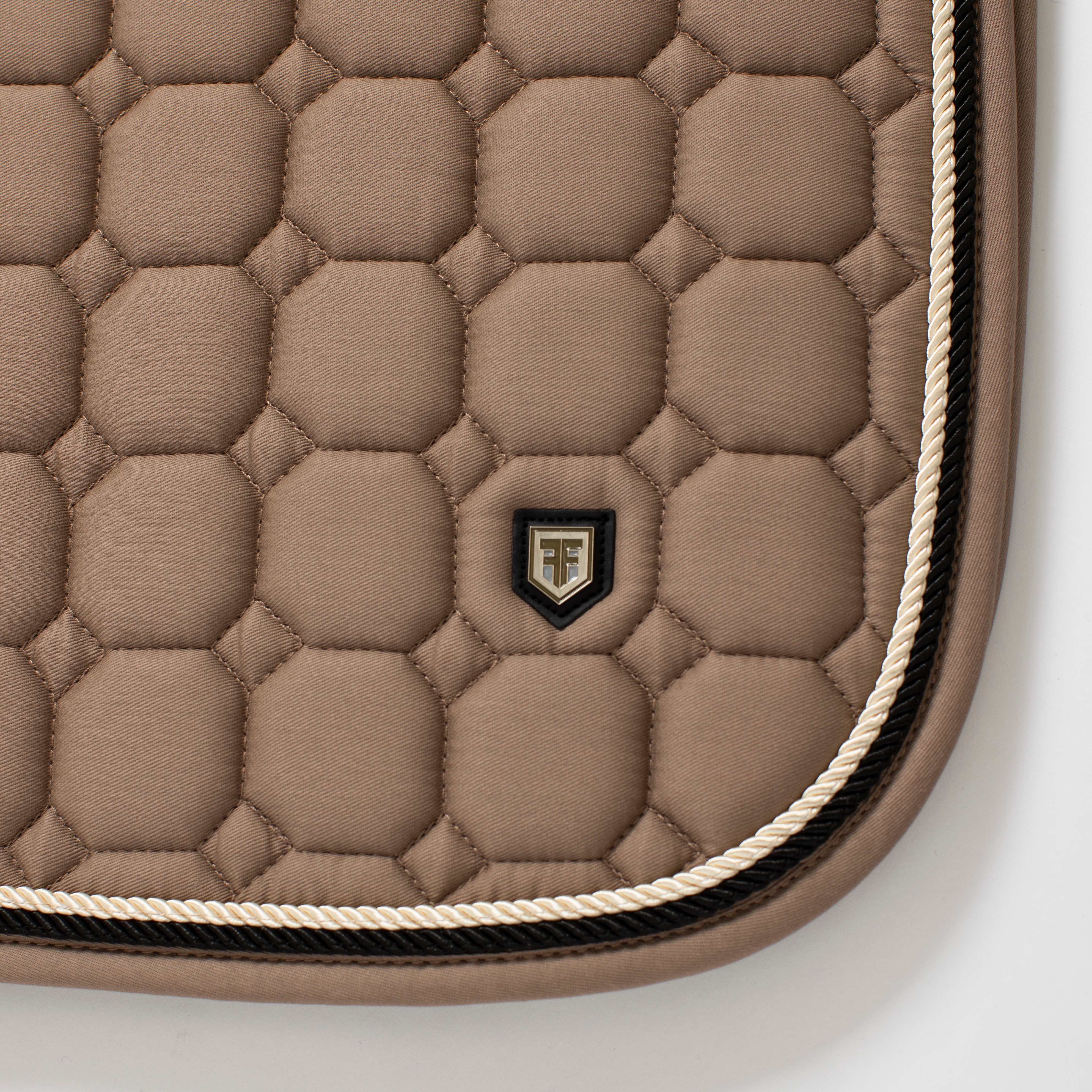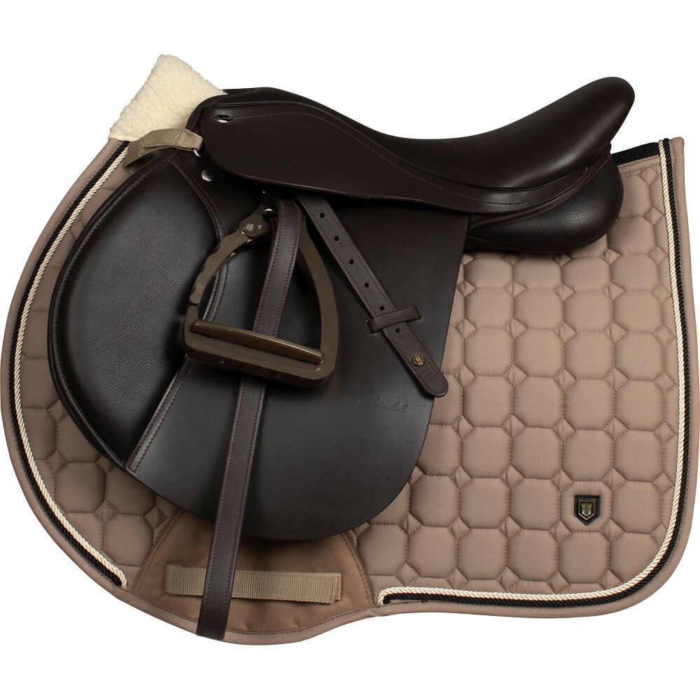 Sjabrak met quiltpatroon met slijtvaste katoenen keperstof aan de buitenzijde. Sterke combinatievulling van 300 g polyfill + 1 cm schuim zorgt voor een stevige sjabrak die de vorm behoudt en goed blijft liggen. Binnenzijde van 100% polyester, functioneel materiaal dat bijdraagt aan het afvoeren van vocht van het paard. Teddyvoering bij de nek om schuren te voorkomen en een paneel van 3D-mesh over de ruggengraat voor ventilatie. Extra verstevigd bij de zadelriem voor extra slijtvastheid. Korte banden voor bevestiging aan de d-ring van het zadel zorgen ervoor dat het sjabrak op de meeste zadels past.