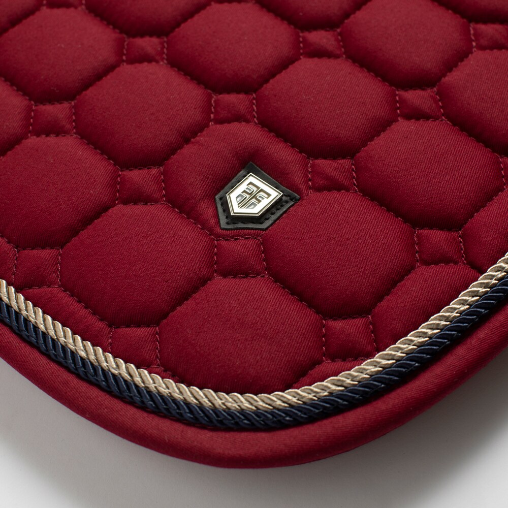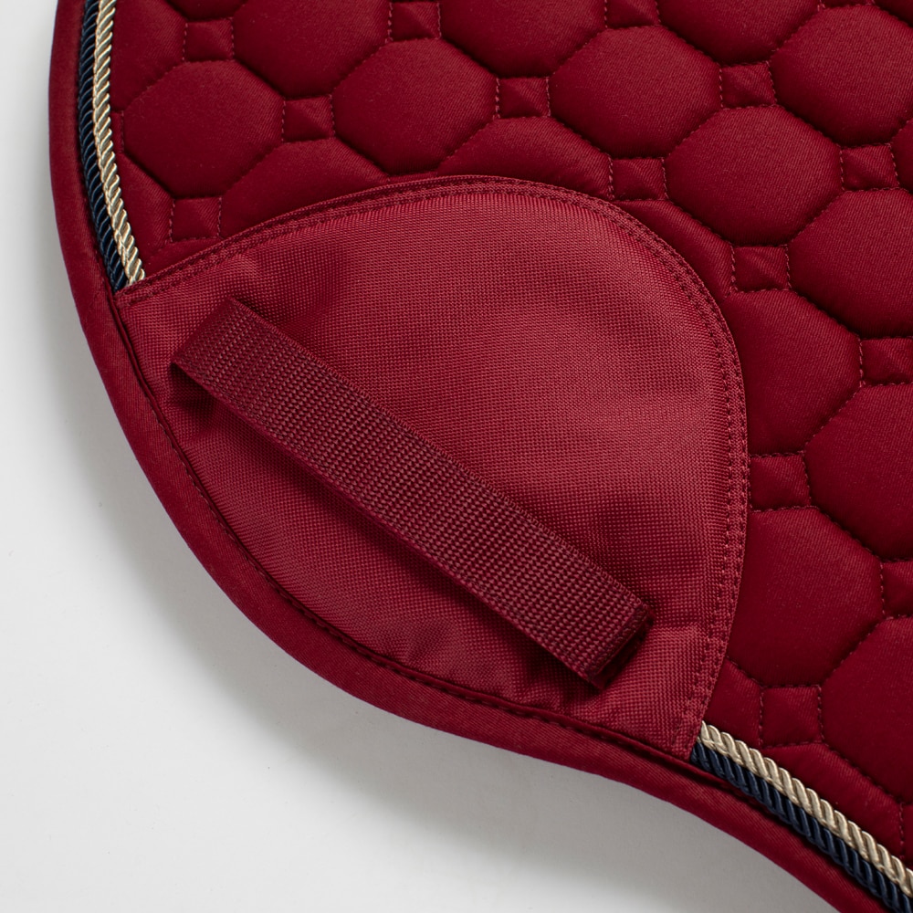 Sjabrak met quiltpatroon met slijtvaste katoenen keperstof aan de buitenzijde. Sterke combinatievulling van 300 g polyfill + 1 cm schuim zorgt voor een stevige sjabrak die de vorm behoudt en goed blijft liggen. Binnenzijde van 100% polyester, functioneel materiaal dat bijdraagt aan het afvoeren van vocht van het paard. Teddyvoering bij de nek om schuren te voorkomen en een paneel van 3D-mesh over de ruggengraat voor ventilatie. Extra verstevigd bij de zadelriem voor extra slijtvastheid. Korte banden voor bevestiging aan de d-ring van het zadel zorgen ervoor dat het sjabrak op de meeste zadels past.