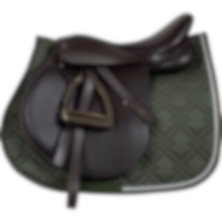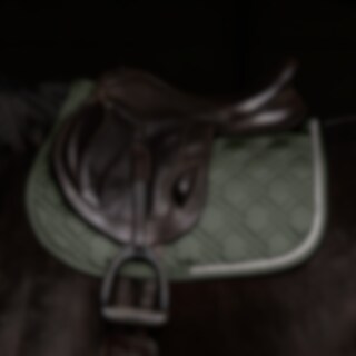 Luxe sjabrak met buitenzijde van 100% katoen, combinatievulling van 300 g polyester + 1 cm schuim dat de vorm behoudt en enigszins schokdempend is. Binnenzijde van 100% polyester coolmax dat bijdraagt aan het afvoeren van vocht, zodat het paard zich tijdens de rit prettig voelt. Versierd met een rij stenen en gedraaide biesjes van polyester lurex.
