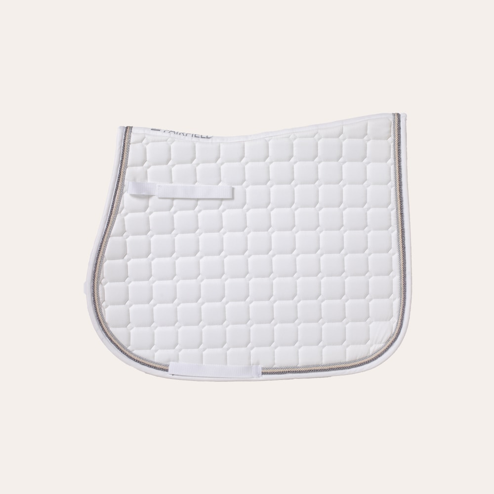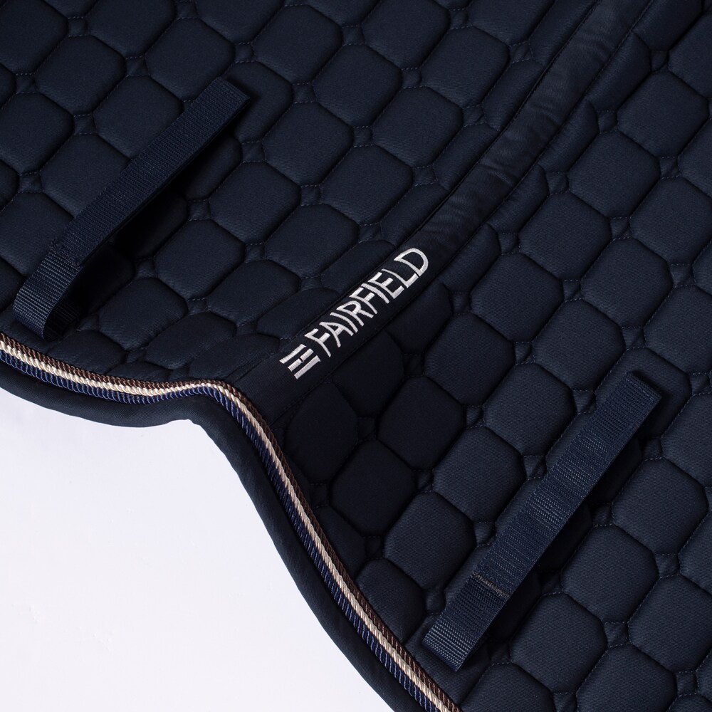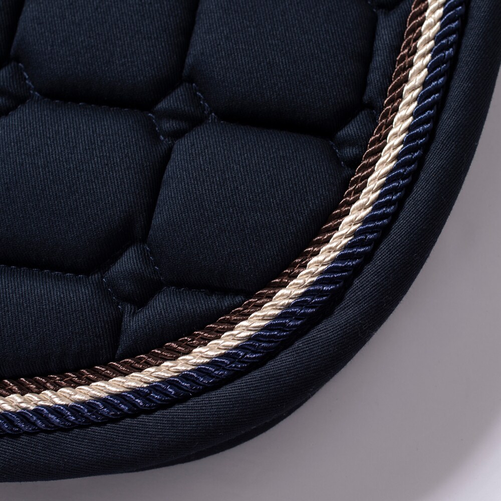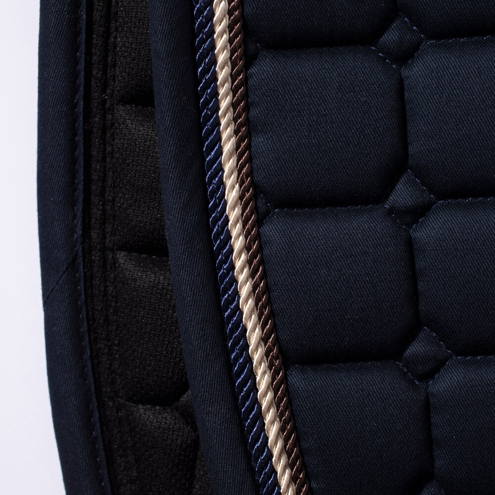 Sjabrak met sterke combinatievulling van 120 g polyfill en 1,2 cm schuim dat een licht schokdempend effect geeft en ervoor zorgt dat het sjabrak ook na vele wasbeurten zijn vorm behoudt. Buitenstof van duurzame 100% katoenen keperstof, versierd met drie polyesterzijden biezen. De binnenkant van zacht, flexibel coolmax dat vocht van het paard afvoert om zweet en schuren te voorkomen. Perfect voor borduren.
