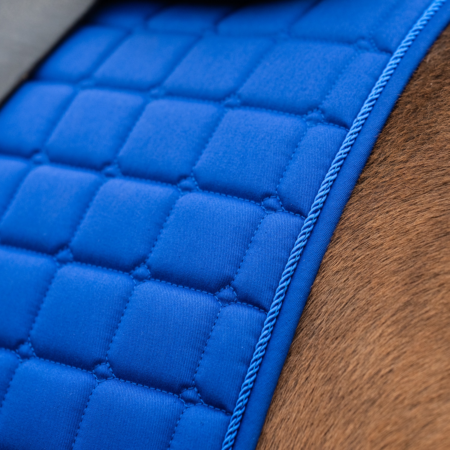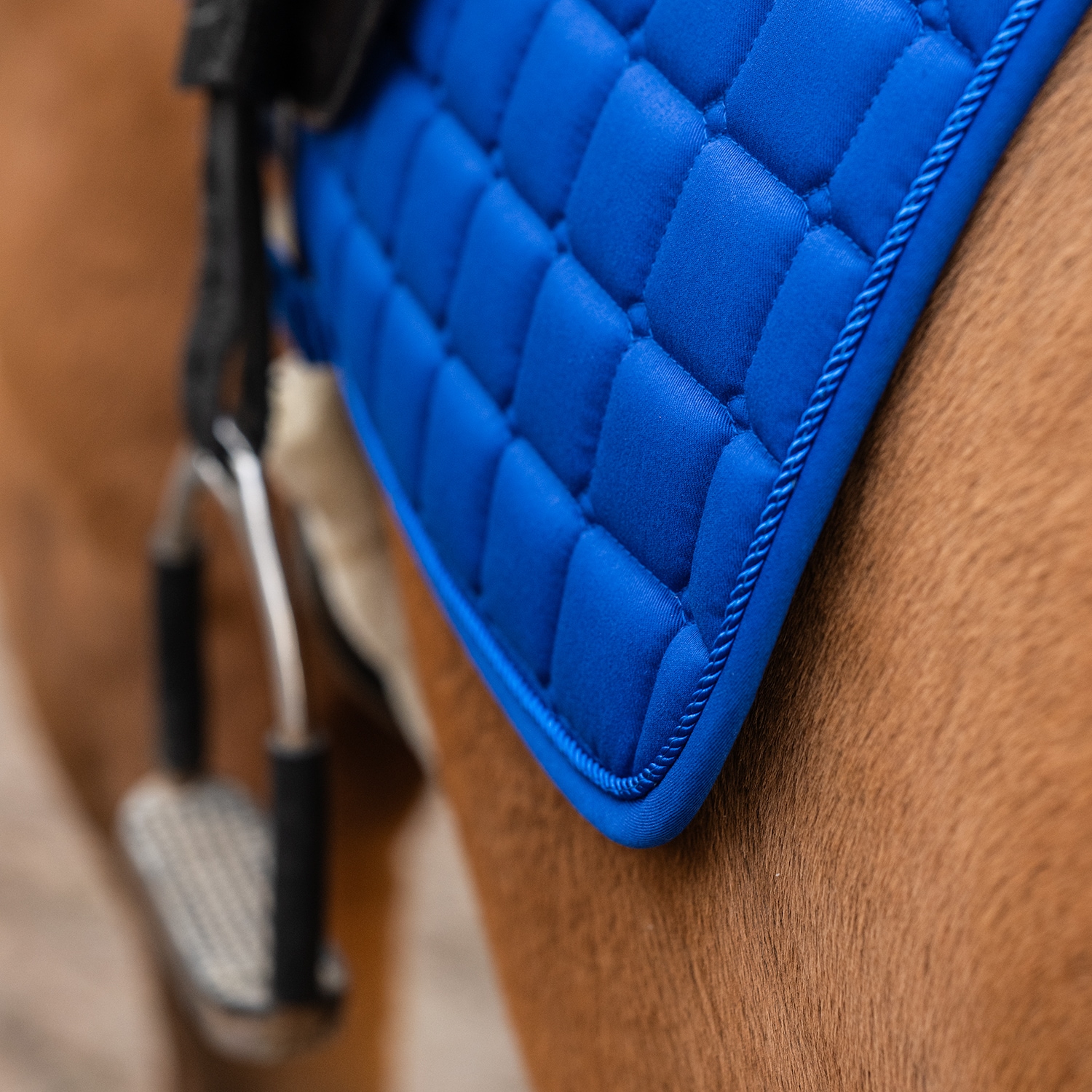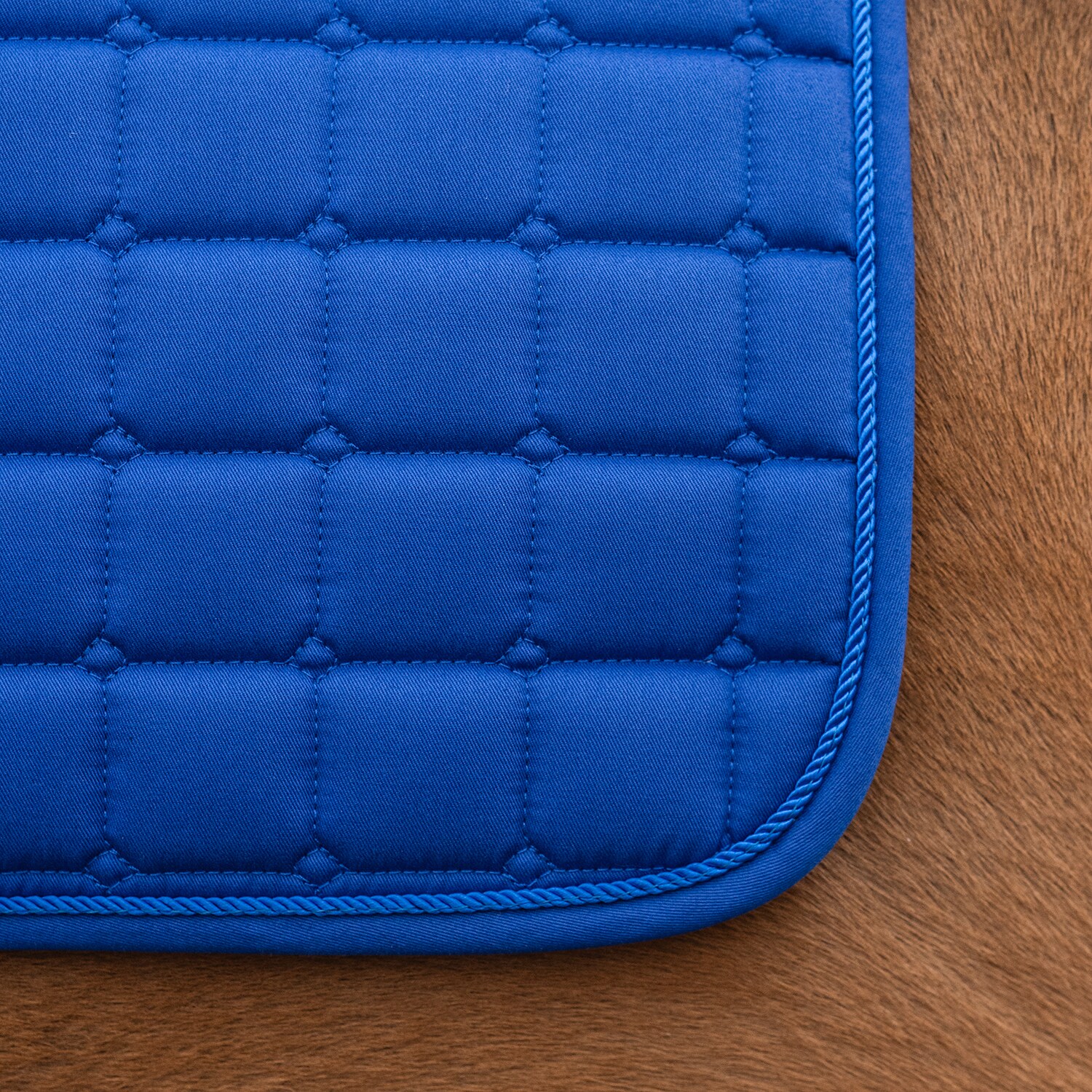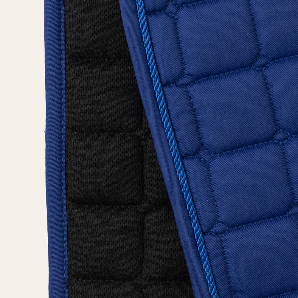 Doorgestikt zadeldek met gecombineerde vulling van 300 g polyfill + 0,8 cm foam. Zorgt voor een stevig zadeldek dat zijn vorm behoudt en goed onder het zadel op zijn plaats blijft liggen. De binnenzijde is gemaakt van ademend Coolmax functioneel materiaal dat helpt vocht van het paard af te voeren.