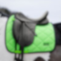 Dik zadeldek met combinatievulling van 300 g polyestervulling + 0,80 cm schuim waardoor het zadeldek stevig onder het zadel ligt en zijn vorm was na was behoudt. Binnenkant van functioneel Coolmax-materiaal dat het paard helpt een comfortabele temperatuur te behouden. Klittenbandriempjes voor bevestiging aan het zadel. Geborduurd Fairfield-logo.