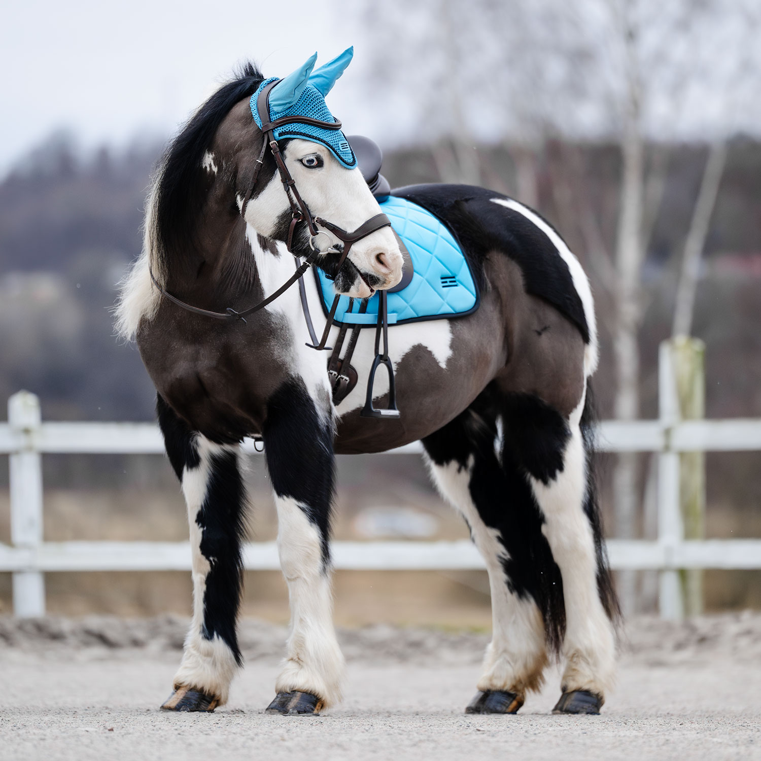Dik zadeldek met combinatievulling van 300 g polyestervulling + 0,80 cm schuim waardoor het zadeldek stevig onder het zadel ligt en zijn vorm was na was behoudt. Binnenkant van functioneel Coolmax-materiaal dat het paard helpt een comfortabele temperatuur te behouden. Klittenbandriempjes voor bevestiging aan het zadel. Geborduurd Fairfield-logo.