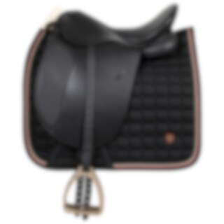 Sjabrak met quiltpatroon met slijtvaste katoenen keperstof aan de buitenzijde. Sterke combinatievulling van 300 g polyfill + 1 cm schuim zorgt voor een stevige sjabrak die de vorm behoudt en goed blijft liggen. Binnenzijde van 100% polyester, functioneel materiaal dat bijdraagt aan het afvoeren van vocht van het paard. Teddyvoering bij de nek om schuren te voorkomen en een paneel van 3D-mesh over de ruggengraat voor ventilatie. Extra verstevigd bij de zadelriem voor extra slijtvastheid. Korte banden voor bevestiging aan de d-ring van het zadel zorgen ervoor dat het sjabrak op de meeste zadels past.