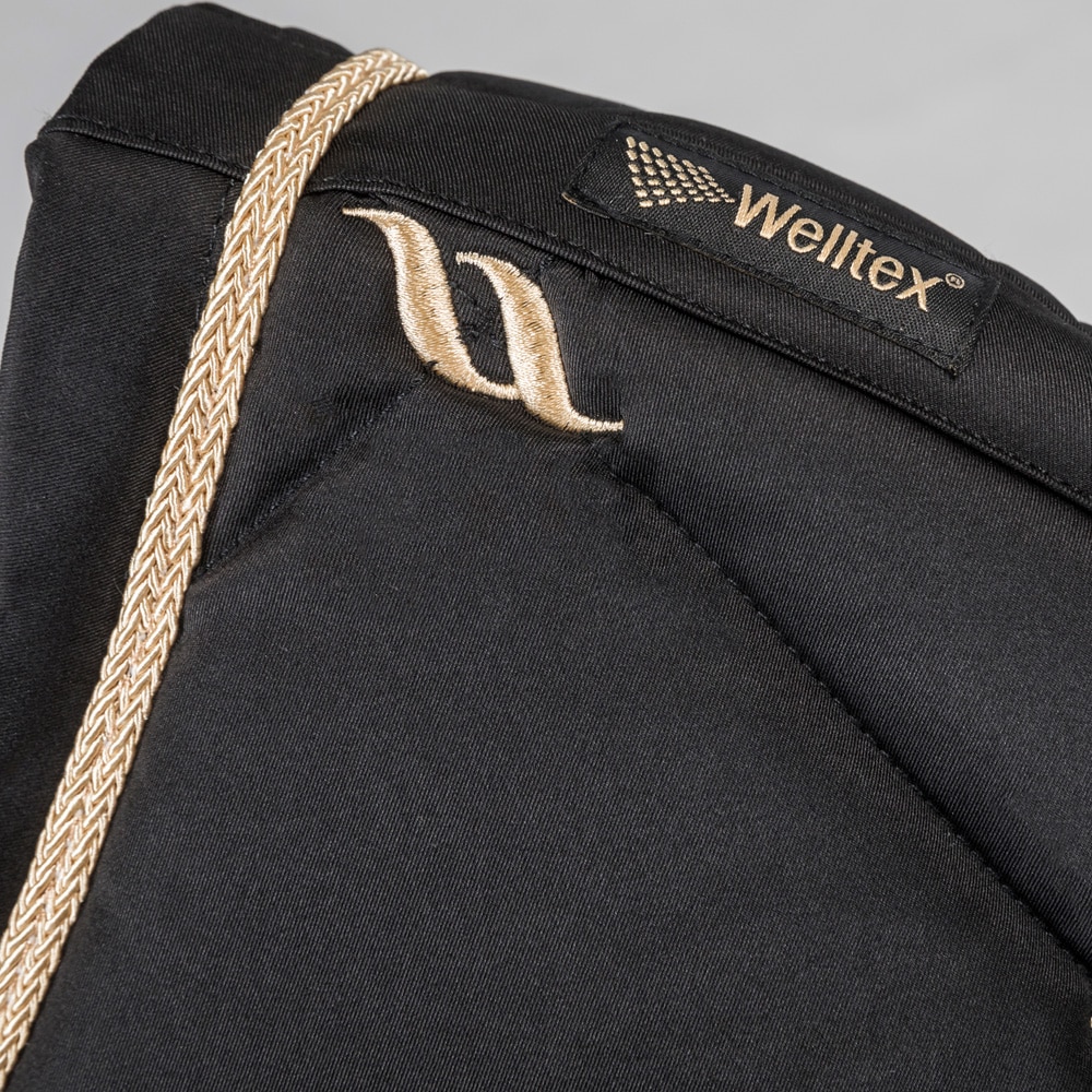 Paardendeken uit de Back on Track Night Collection. Glanzende polyester buitenstof. Voering van wafelstof met Welltex, het gepatenteerde materiaal van Back on Track. Het Welltex-materiaal stimuleert de doorbloeding en vermindert de spanning in de spieren van het paard. Dit verbetert de mobiliteit en voorkomt rugspanning. De zadeldeken wordt verhoogd over de rug en schoft van het paard om voldoende ruimte te bieden en de druk te verminderen.