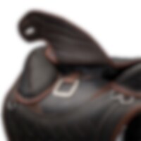 Tree Free, een boomloos zadel. Met de leren beugel van de stijgbeugel iets verder naar achteren om de ruiter te helpen een meer gecentreerd zadel te krijgen. 100% nubuck met zwarte fleece-onderkant. Mag alleen worden gebruikt met pads die zijn ontworpen voor boomloze zadels. Geschikte pad Back Saver, artikelnummer 400070.