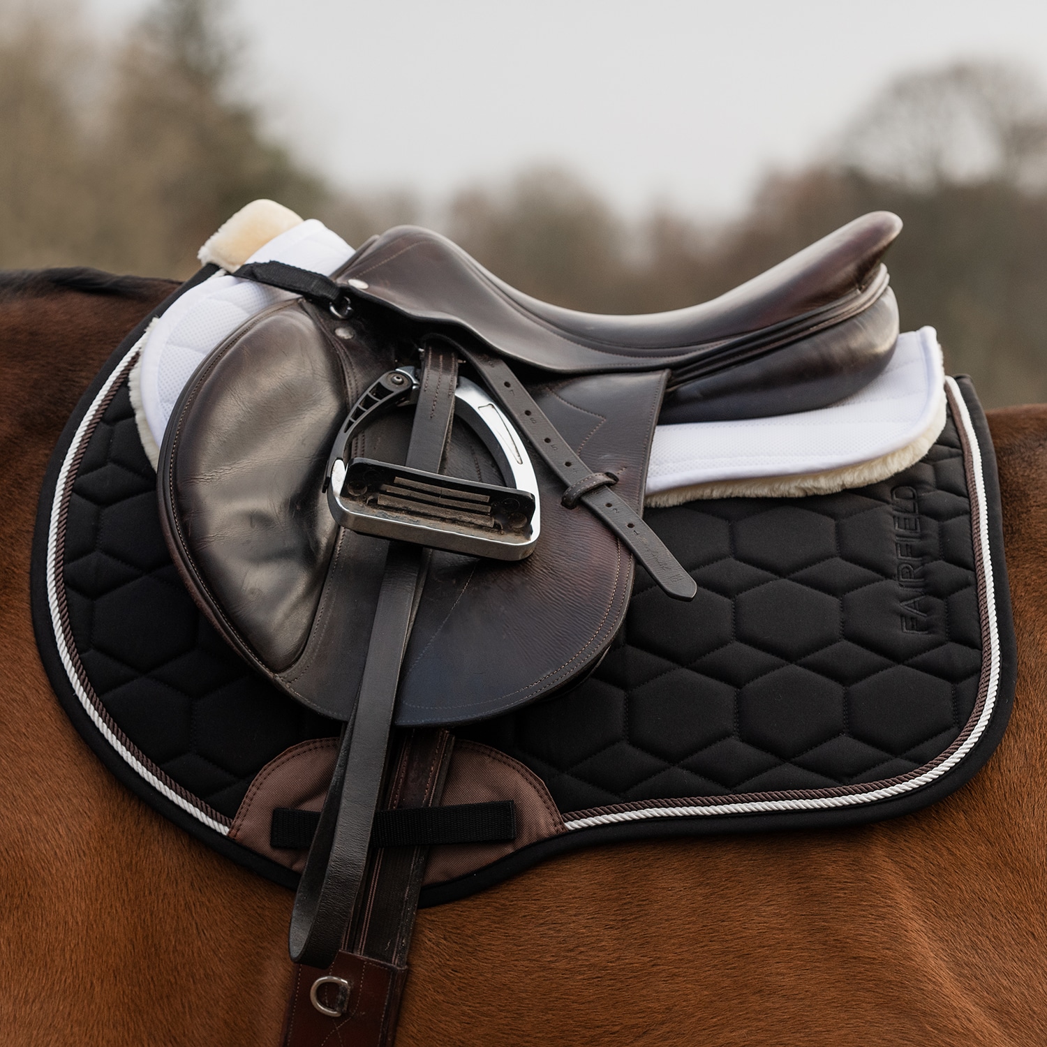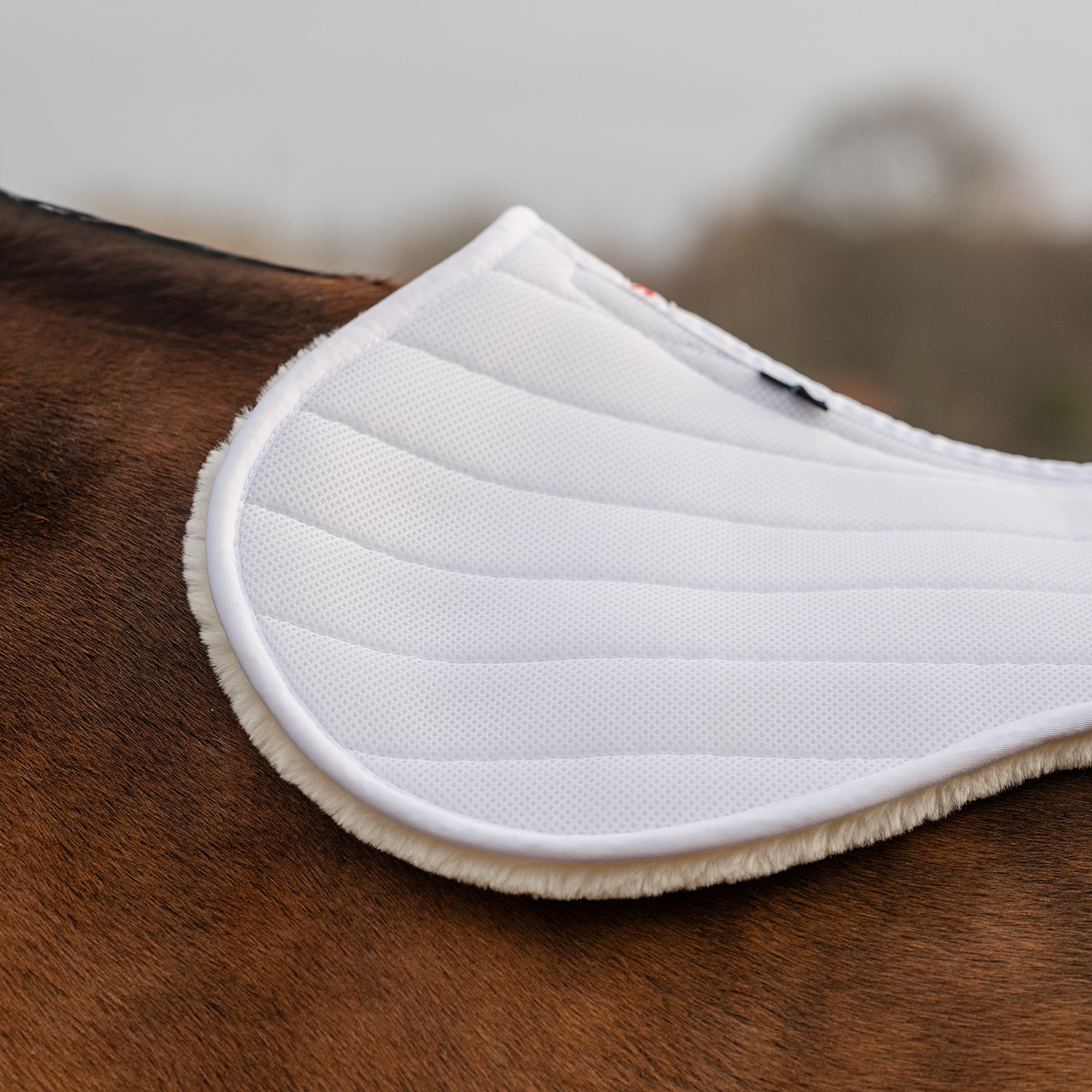 Zadeldek met bovenkant en binnenvoering van ademend 3D-mesh, dat overtollige warmte laat ontsnappen. Het stevige 3D mesh aan de binnenkant vangt schokken op en laat overtollige warmte door. Gevoerd met stevig imitatieschapenleer van 100% polyester, dat dr