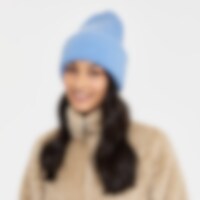 Zachte en warme muts van ribstof. Breed oprolbaar gedeelte met geborduurd logo.