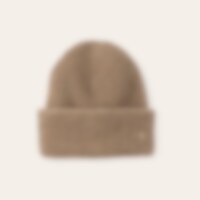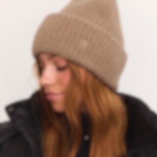 Zachte en warme muts van ribstof. Breed oprolbaar gedeelte met geborduurd logo.