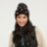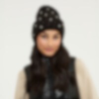 Ribgebreide muts van Fairfield. Versierd met strass-steentjes en parels die een stijlvolle en moderne uitstraling geven. Eén maat.