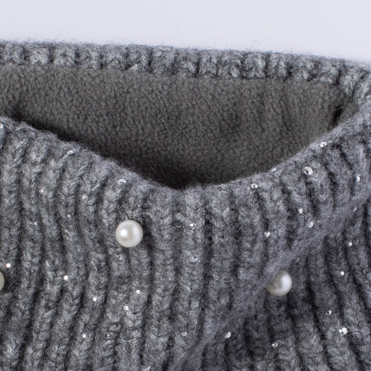 Geribbelde hoofdband met fleecevoering. De hoofdband is versierd met strass-steentjes en parels die een stijlvolle en moderne uitstraling geven. Eén maat.