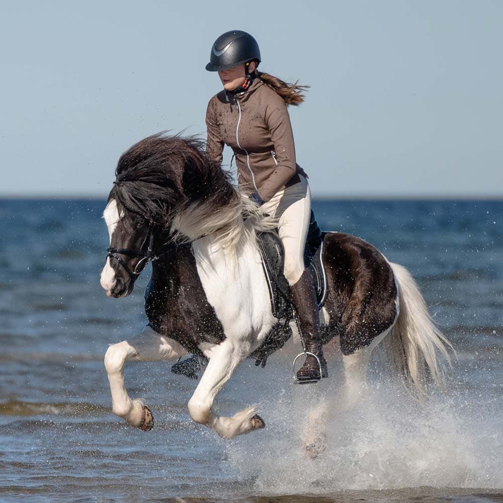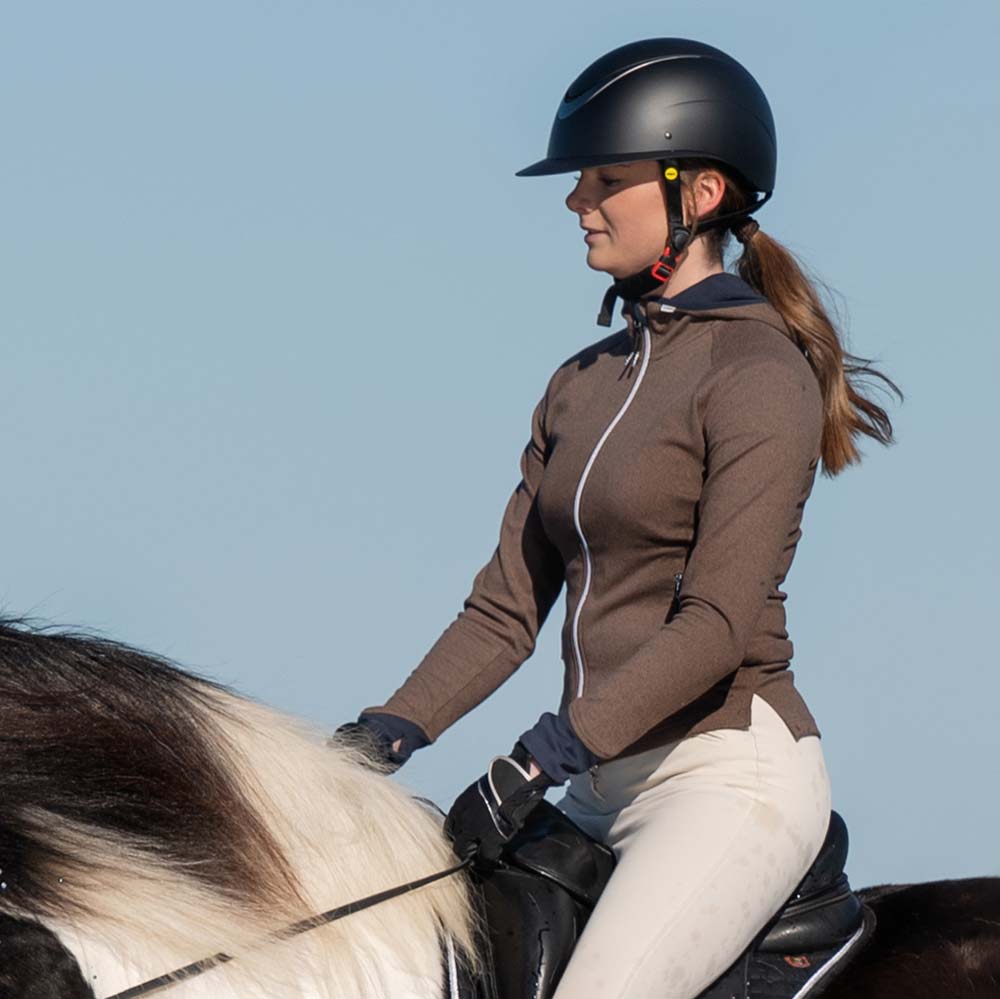 Cardigan met lange mouwen en capuchon van powerstretch-fleece. Tweewegrits en twee zakken aan de voorzijde met ritssluiting. Duimgaten in de mouwen.