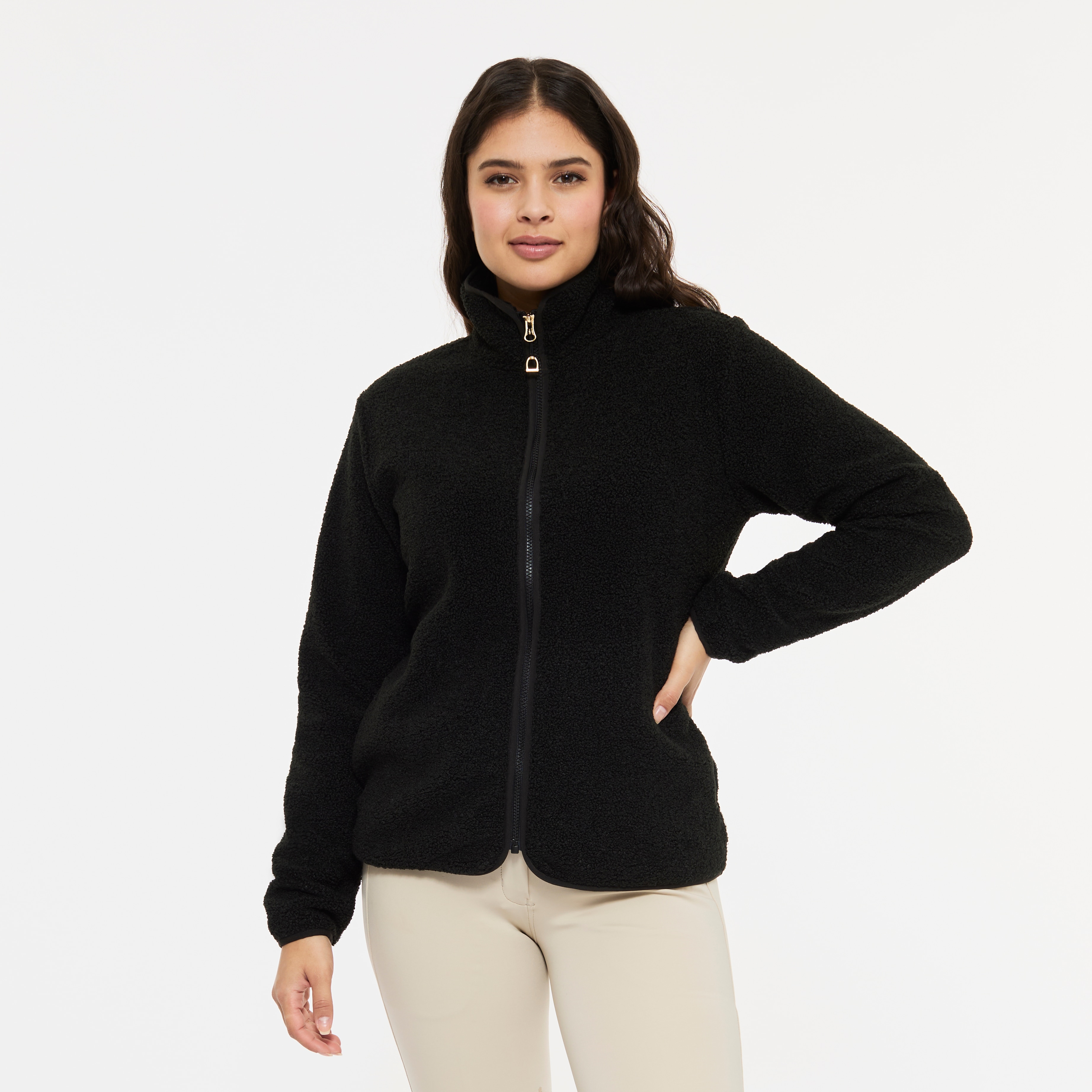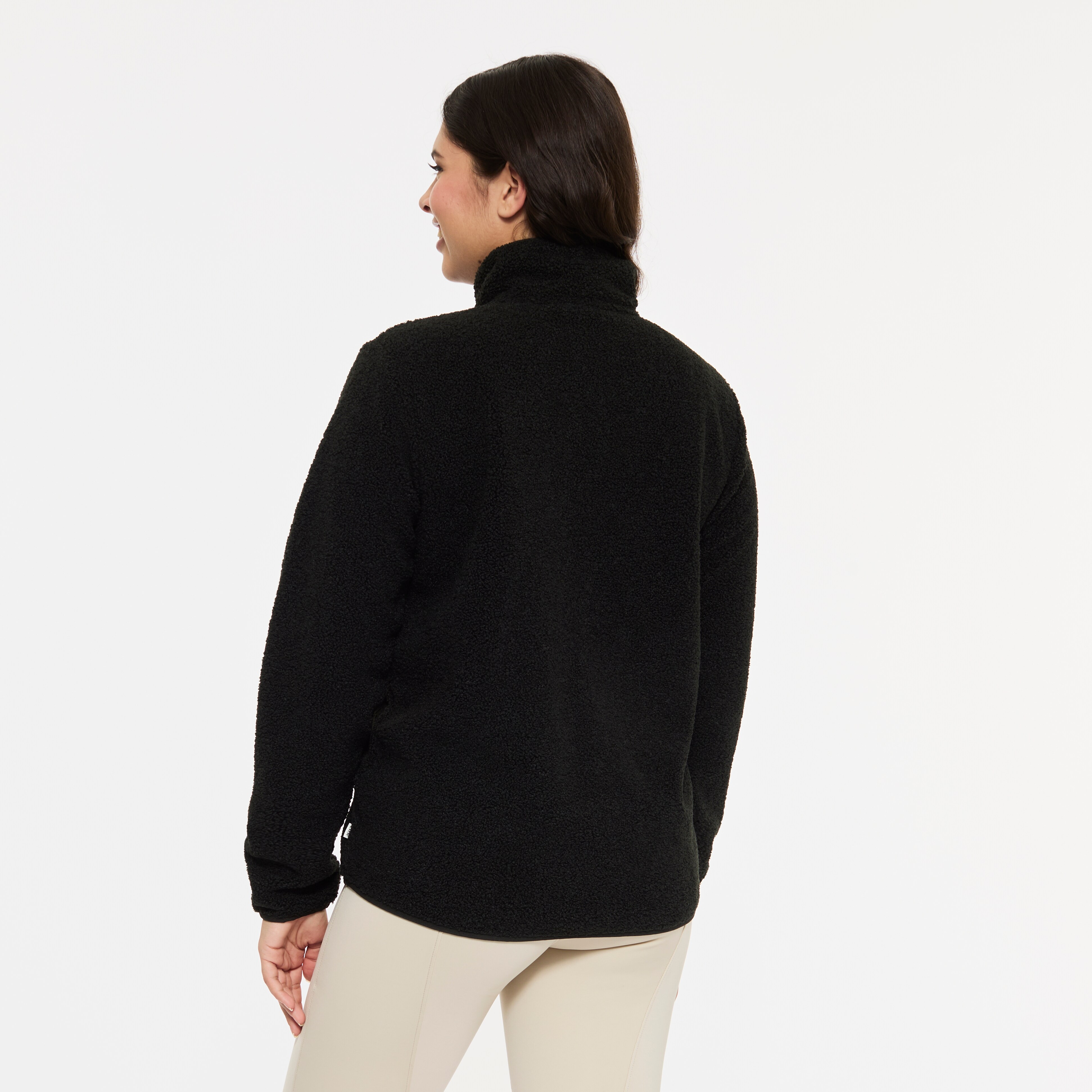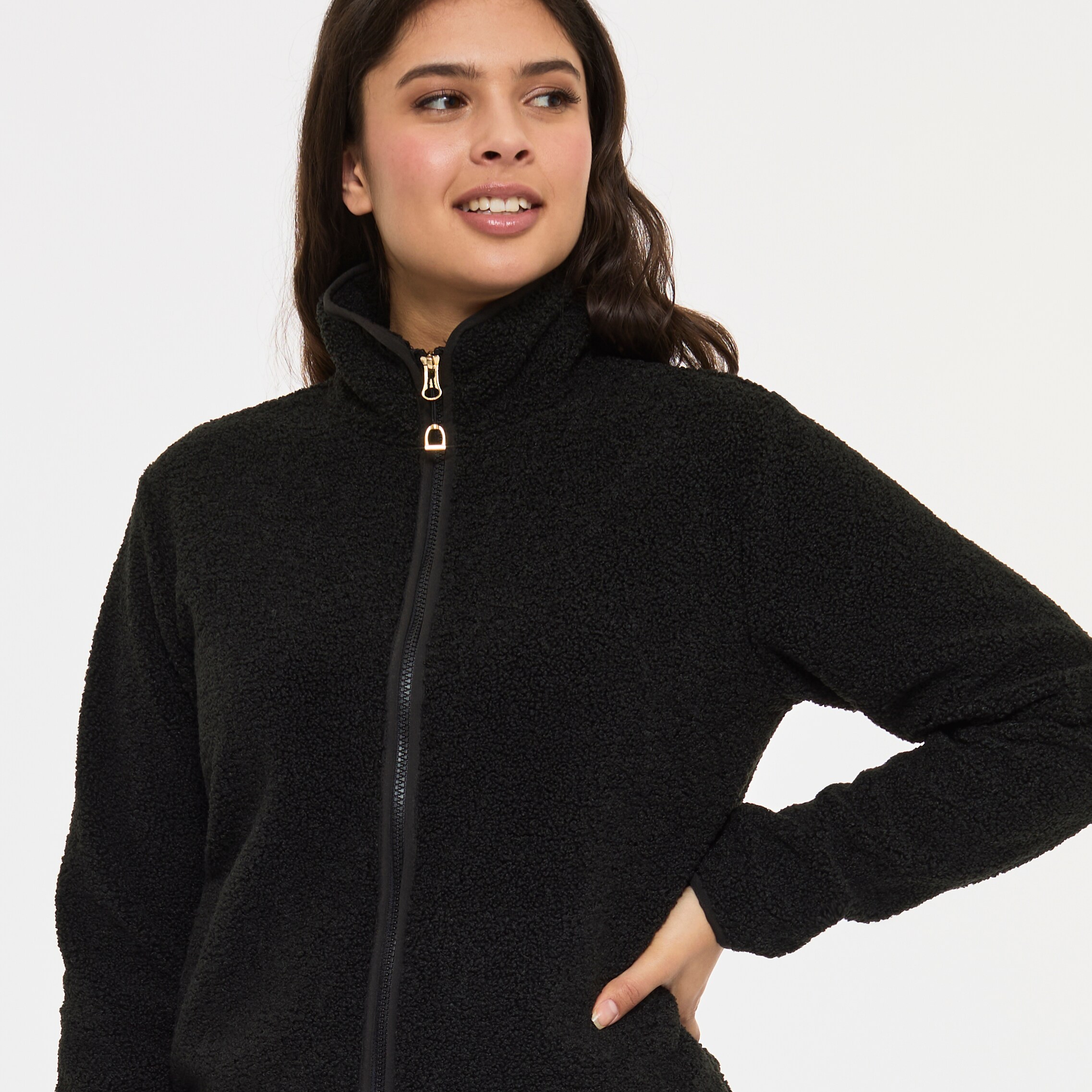 Zachtpolige fleecesweater met een hoge kraag, ritssluiting voorop en twee open zaken.
