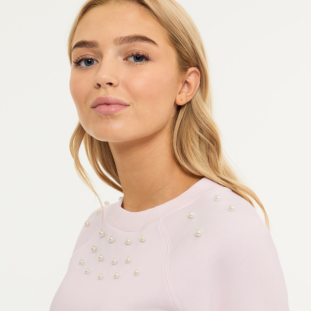 Het sweatshirt dat met zijn decoratieve parels net zo goed werkt in de stal als in het dagelijks leven. Relaxte pasvorm met zacht geborstelde binnenkant. Geribde manchetten langs de hals, mouwen en onderkant.