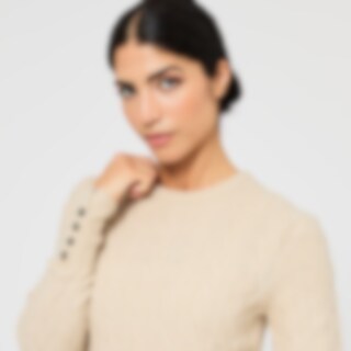Klassieke kabelgebreide trui met ronde hals in zachte en comfortabele kwaliteit. Geribbelde zoom en manchetten. Wijdere manchetten met decoratieve knopen.
