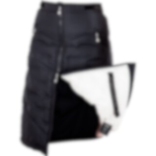 Een warme, weersbestendige rok met tweewegrits aan de voorzijde en rijopening met rits aan de achterzijde. Elastische band aan binnenzijde die wordt vastgezet om de bovenbenen zodat de rok op zijn plek blijft. Elastisch in de taille achter voor perfecte pasvorm en afstelling in de taille met klittenband. Twee met fleece gevoerde zakken met ritssluiting voorop. De rok heeft een sportieve look en is gevoerd met een flinke hoeveelheid verwarmend synthetisch dons dat dezelfde verwarmende eigenschappen heeft als dons, dus ook het voordeel dat de verwarmende eigenschappen behouden blijven in vochtige toestand. De buitenstof bestaat uit weersbestendig materiaal zodat de winterrok geschikt is voor mensen die veel buiten zijn in het winterseizoen, ongeacht de weersomstandigheden. De rok is geïmpregneerd met Rudolf Bionic Finish Eco, een water- en vuilafstotende behandeling die milieuvriendelijk is en vrij van toegevoegde perfluorstoffen (PFAS). De impregnering moet opnieuw worden geactiveerd wanneer het water geen druppels meer vormt. Er is geen speciaal wasmiddel vereist; vermijd echter het gebruik van weekmakers die de werking verstoren. Gebruik Organotex bij opnieuw impregneren.