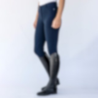 Comfortabele basisrijbroek van katoenen stretchtricot met knieversteviging. Normaal taillehoogte. Elastiek onderaan de pijpen. Voering met intasten.