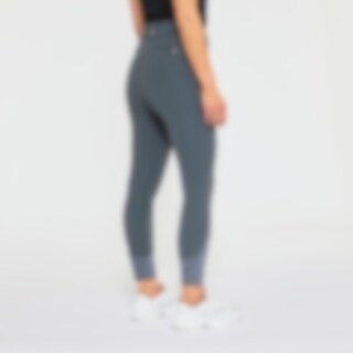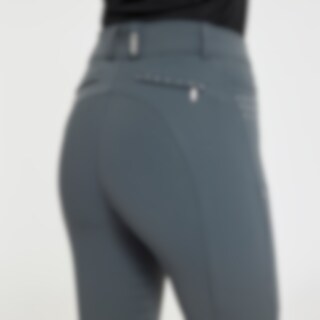 Geweven rijbroek met zadelinzet van rekbare, functionele stof. Vormvaste kwaliteit die slijtvast en vuilafstotend is, en uiterst comfortabel zit. Kniebescherming met grip waarbij de griplaag doorloopt op de binnenkant van de dij voor optimale grip en steun in het zadel zonder dat de broek volledig versterkt is. Elastiek onderaan de pijpen. Normale taillehoogte met dubbele sluiting zodat de rijbroek goed blijft zitten en extra comfort biedt. Twee zakken voorop en twee zakken met rits achterop. Onopvallend zakje met rits voor mobieltje aan de buitenkant van het dijbeen. Fraaie details met siersteentjes bij de zakken geven een elegant uiterlijk. Valt wat klein, we raden daarom aan een maat groter te nemen.