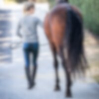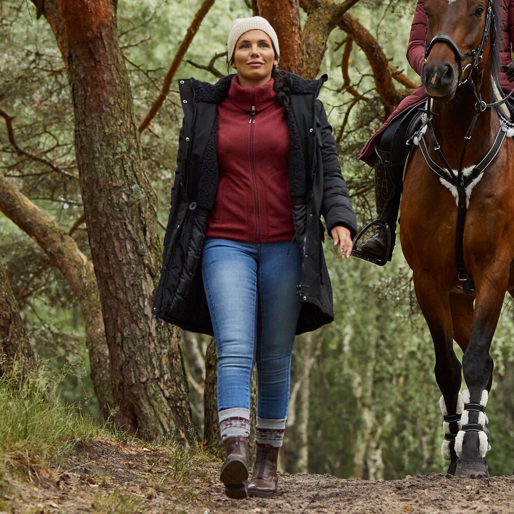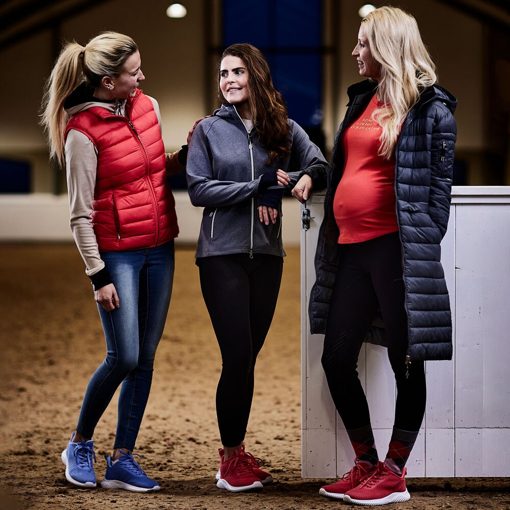 Rijbroek van stretchdenim, volledig versterkt met grip voor de beste grip in het zadel. 5-pocket jeans met contrasterende stiksels. Binnenbeenlengte ca. 70 cm in maat 38.