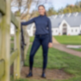 Warme, zachte rijbroek met hoge taille en siliconen grip over het zitvlak en EQUIPAGE-logo in een gestreept patroon. (GEMIDDELD HOOG). Glad oppervlak van technische kwaliteit met geborstelde binnenzijde die de vorm goed behoudt. Rits aan de voorkant.