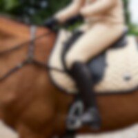 Rijbroek van zachte, rekbare functionele stof met een goed ademend vermogen. Het materiaal is vuilwerend. Geheel versterkte rijbroek met zadelgedeelte met grip voor de beste grip in het zadel. Twee zakken met ritssluiting aan voorzijde. Lussen in voering