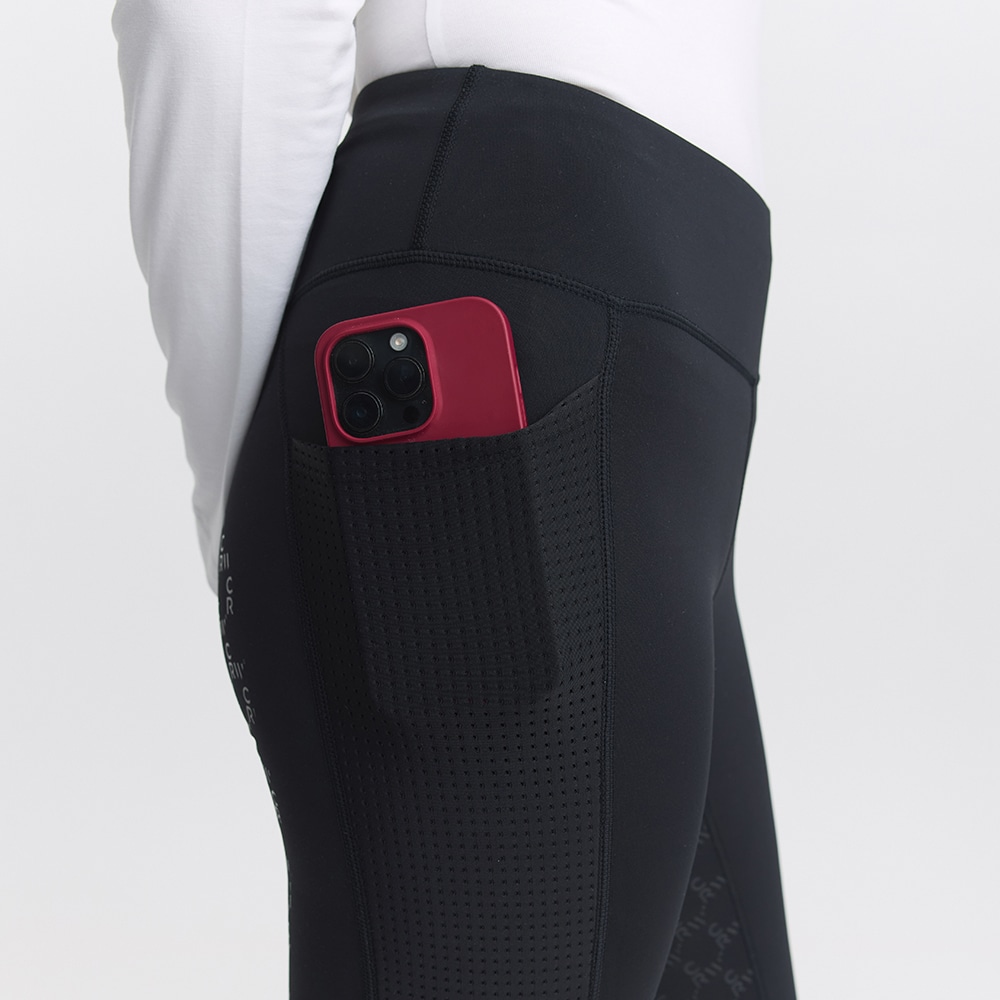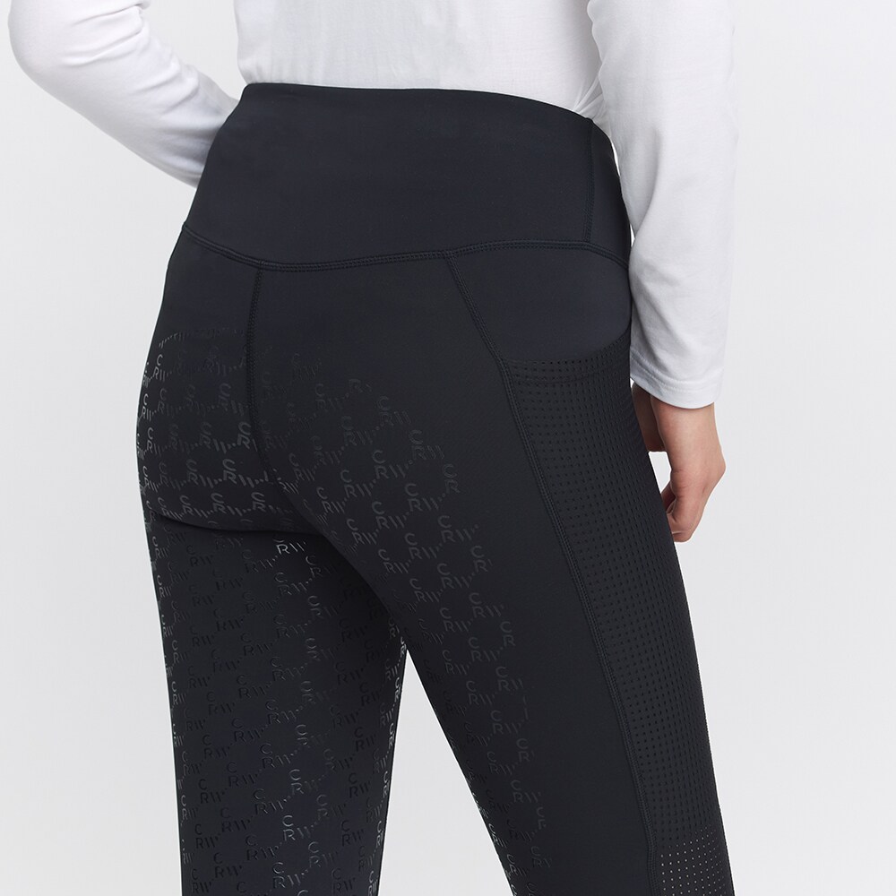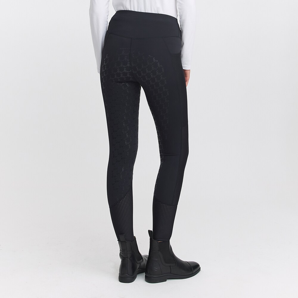 Rijlegging met zadelgedeelte van comfortabel, functioneel materiaal dat gemakkelijk is te reinigen. De kwaliteit is zacht en rekbaar en voelt tegelijkertijd stevig aan. Normale taillehoogte met brede tailleband voor optimale pasvorm en stabiliteit. Geheel