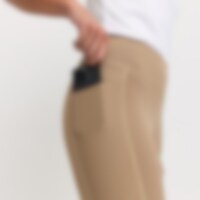 Rijlegging met zadelgedeelte van comfortabel, functioneel materiaal dat gemakkelijk is te reinigen. De kwaliteit is zacht en rekbaar en voelt tegelijkertijd stevig aan. Normale taillehoogte met brede tailleband voor optimale pasvorm en stabiliteit. Geheel