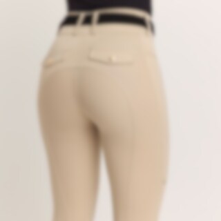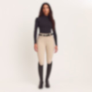 Stijlvolle rijlegging met zadelsnit van comfortabel en onderhoudsvriendelijk functioneel materiaal. De kwaliteit is zacht en rekbaar, maar voelt tegelijkertijd stevig aan. Normale taillehoogte met brede tailleband voor meer comfort. Tailleband met riemlus