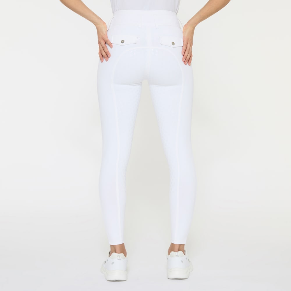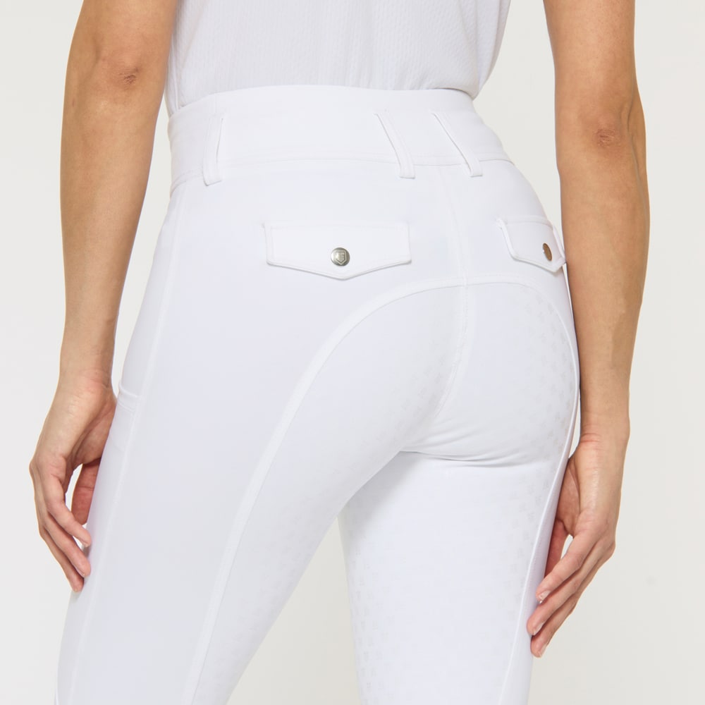 Tijdloze rijlegging met zadelinzet van comfortabel en onderhoudsvriendelijk, functioneel materiaal. De kwaliteit is zacht en rekbaar, maar voelt tegelijkertijd stevig aan. Normale taillehoogte met brede tailleband voor meer comfort. Tailleband met intaste