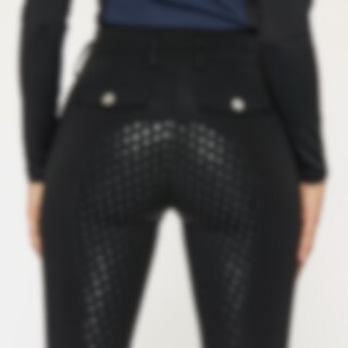 Tijdloze rijlegging met zadelinzet van comfortabel en onderhoudsvriendelijk, functioneel materiaal. De kwaliteit is zacht en rekbaar, maar voelt tegelijkertijd stevig aan. Normale taillehoogte met brede tailleband voor meer comfort. Tailleband met intaste