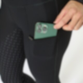 Rijbroek geheel verstevigd met functioneel fourway stretchmateriaal. De kwaliteit is vormvast, flexibel en door de geborstelde binnenkant zeer comfortabel om te dragen. Het functionele materiaal is ook vuilafstotend en gemakkelijk te reinigen. Met volledige versterking voor een zachte zit in het zadel. De hartvormige zadelinzet benadrukt de vorm van het lichaam en ziet er fraai uit. Normale taillehoogte met brede voeringsband is extra comfortabel en stabiel. Zakjes voor mobieltje aan de buitenkant van het dijbeen, met griplaag aan de binnenzijde zodat je mobieltje op zijn plek blijft. Stretch-meshstof onderaan de pijpen.