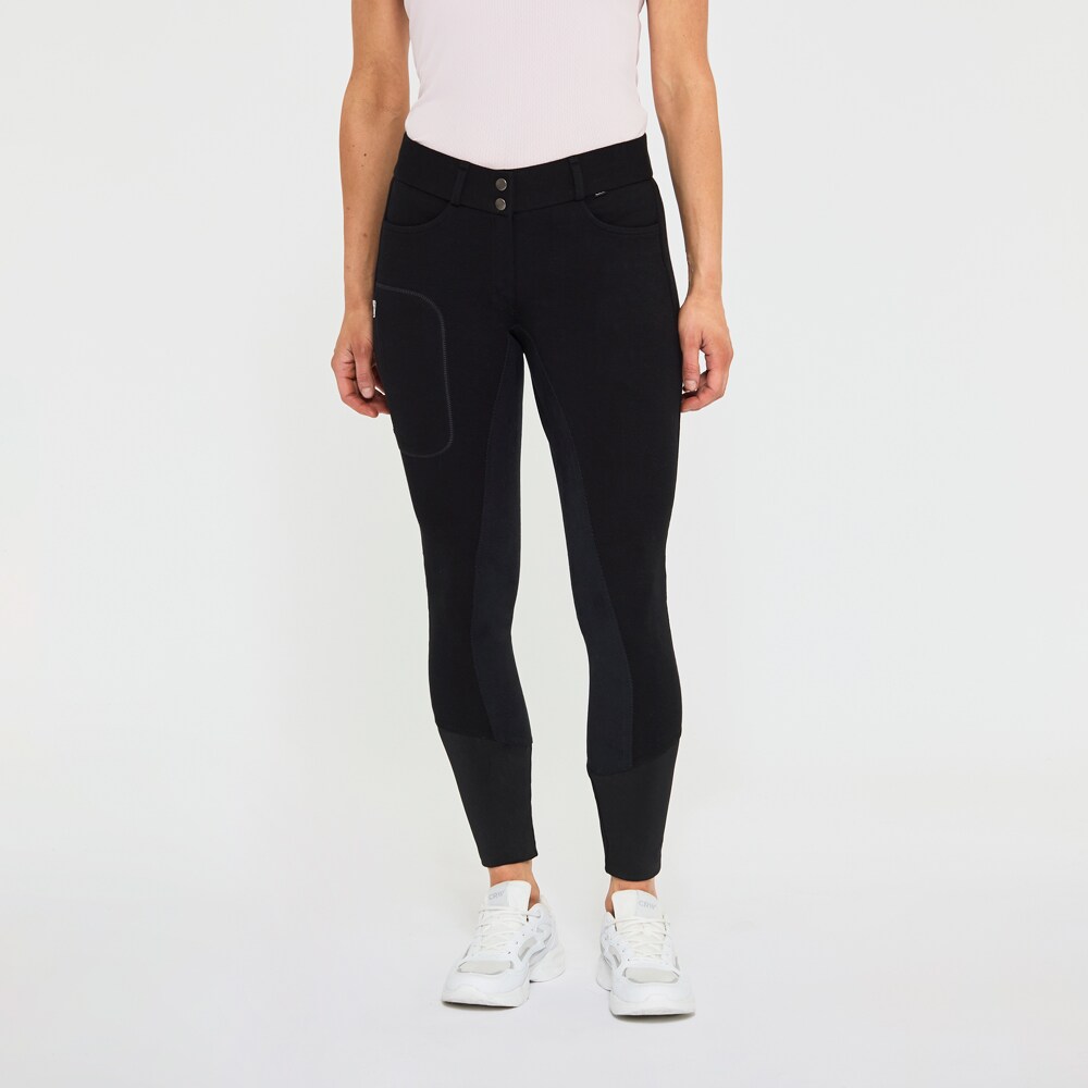 Rijbroek met zadelgedeelte van biologisch katoen. Geheel versterkt met daewoo voor een goede en zachte zit in het zadel. Zeer fraaie basisrijbroek met normale taillehoogte. Elastische voeringband met dubbele sluiting zodat de rijbroek goed blijft zitten e