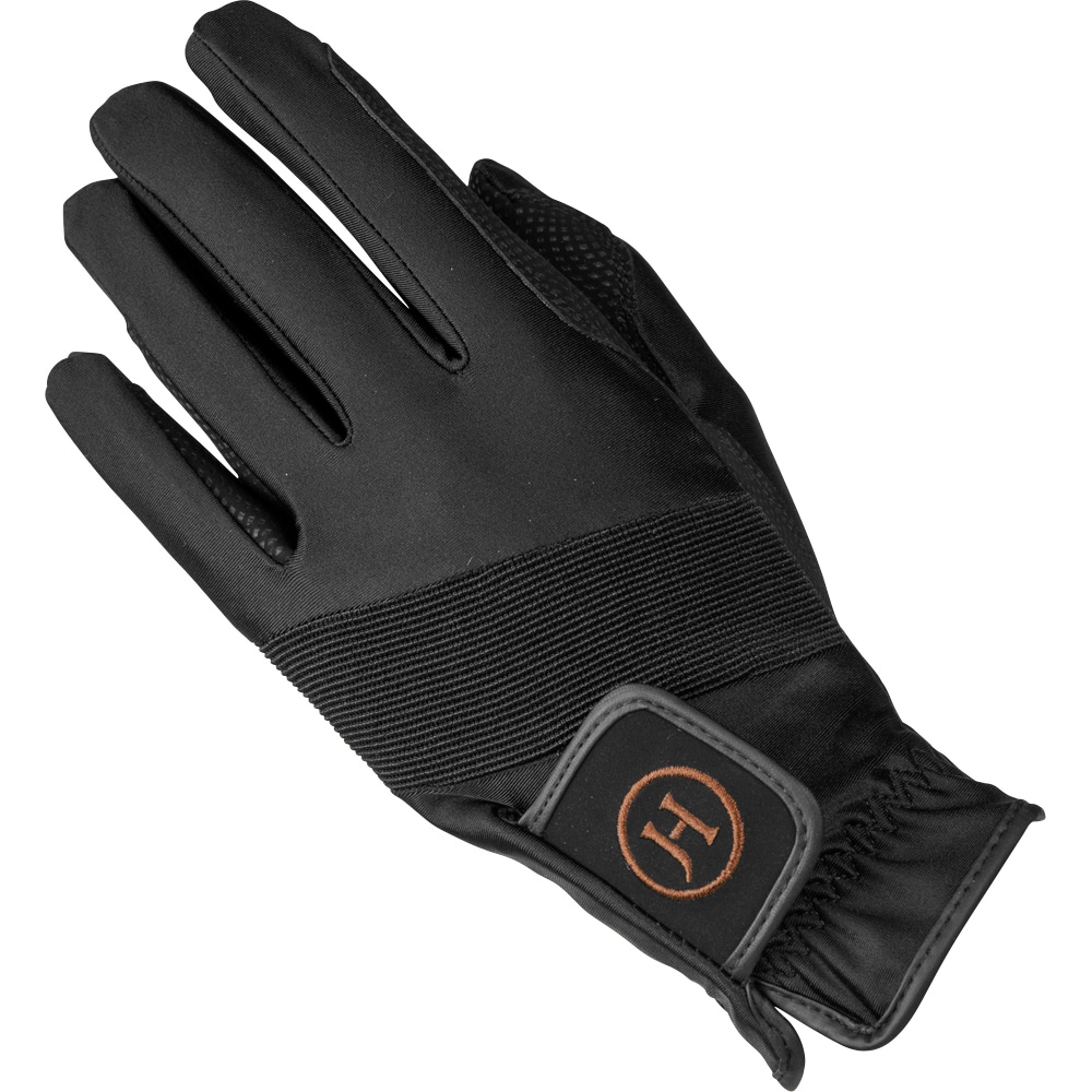 Rijhandschoenen met zacht synthetisch suède op de handpalmen, met een patroon voor uitzonderlijke grip. Elastisch bovenwerk voor een goede pasvorm. Klittenbandsluiting.