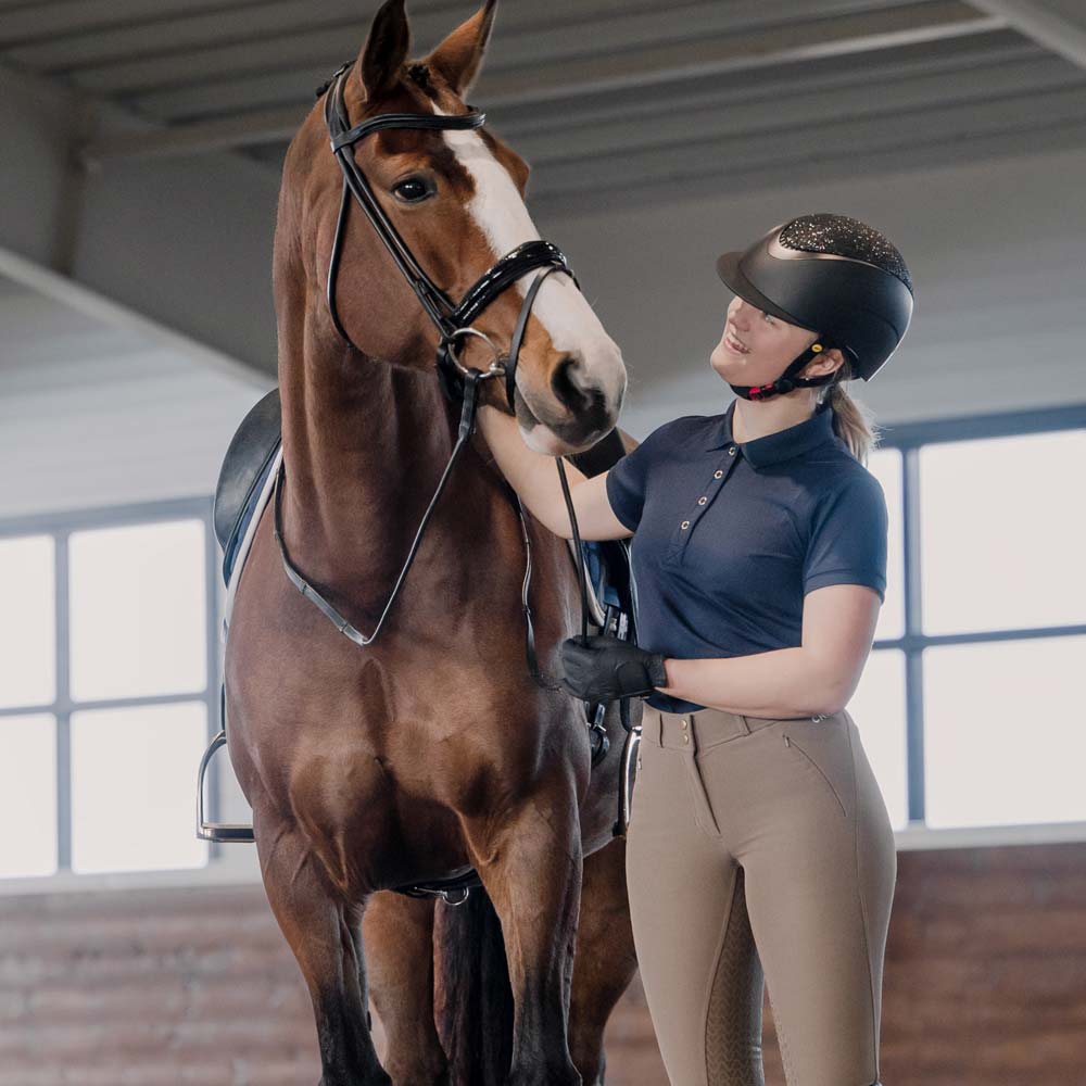 Piké met korte mouwen van zacht en soepel materiaal. Rijopening aan de zijkanten en drukknopen voor.