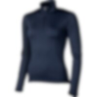 Functionele top met lange mouwen en getailleerde pasvorm. Zachte en rekbare kwaliteit geeft een goede bewegingsvrijheid en goed comfort. De geborstelde binnenzijde zorgt ervoor dat het kledingstuk zacht en prettig aanvoelt op de huid. Opstaande kraag met decoratieve ruche en ritssluiting aan voorzijde.