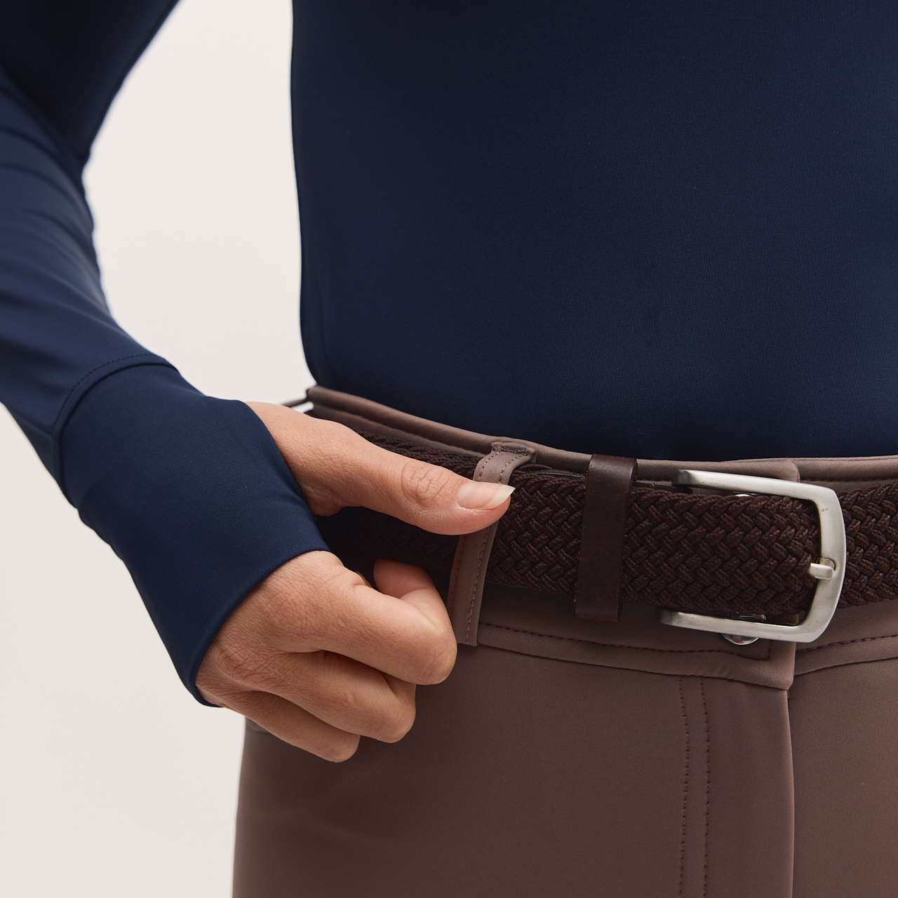 Trainings- en wedstrijdtop met lange mouwen van zacht en functioneel stretchmateriaal. Sneldrogende en vuilafstotende kwaliteit. Strakke pasvorm met halve polo. Duimgaten aan de mouwen.
