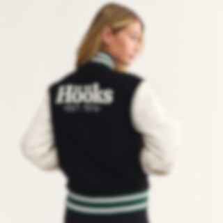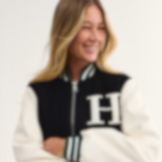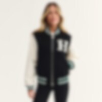 Retro-geïnspireerd baseballjack met logodetails. Het jack is gemaakt van een grof geweven polyester en heeft aan de binnenkant een gewatteerde voering. Mouwen van imitatieleer (PU). Geribde mouwboorden, onderkant en kraag.