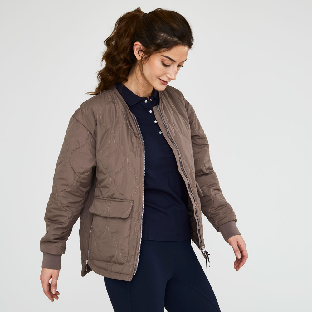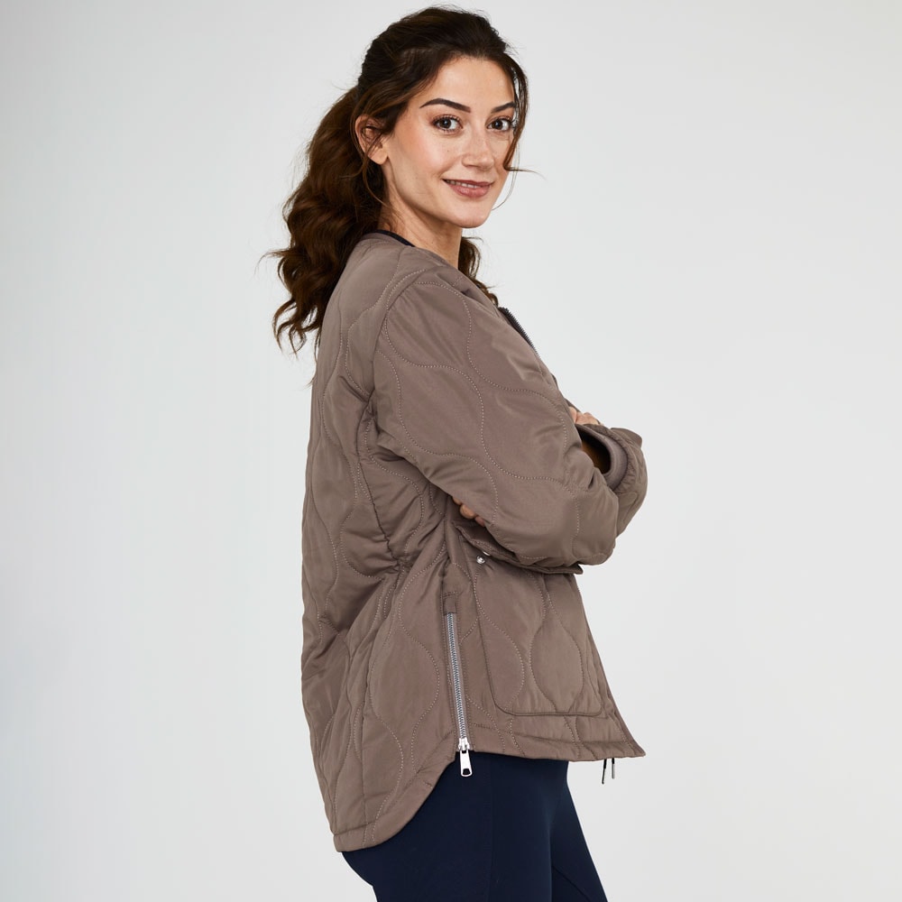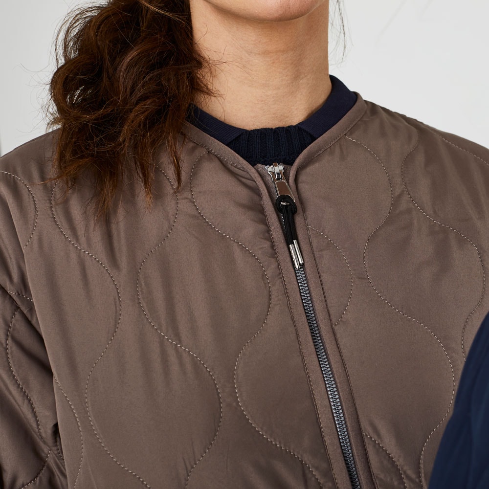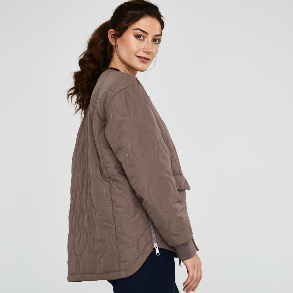 Jack met patchworkpatroon en rijopening aan de zijkant met ritssluiting. Twee zakken met knoopsluiting aan de voorzijde. Manchetten aan de mouwen. Het gerecycled polyester is voorzien van GRS-certificatie.