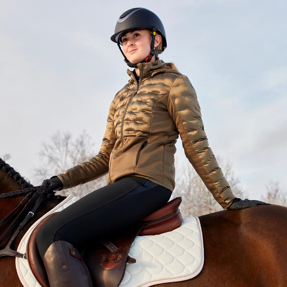 Getailleerd pufferjack met glinstereffect op de stof. Gewatteerd met polyesteropvulsel dat aanvoelt als dons. Twee zakken met ritssluiting en afneembare capuchon. Zijpanelen van powerstretch-fleece met geborstelde binnenzijde voor optimale pasvorm en comfort. Kraag met fleece aan binnenkant. Ritssluitingen van metaal met logohanger.