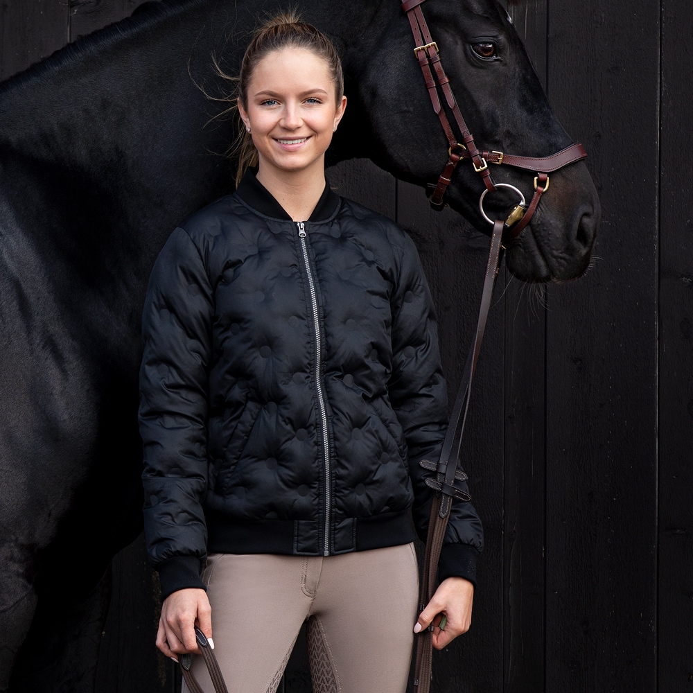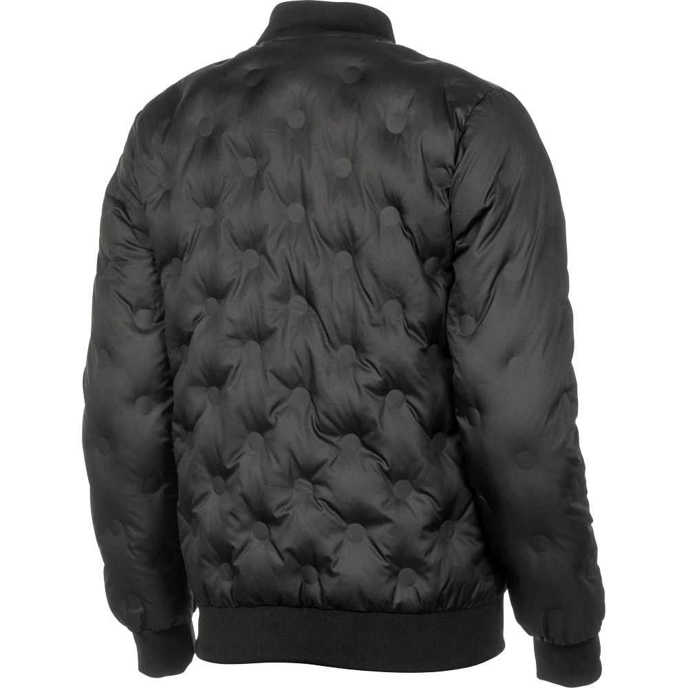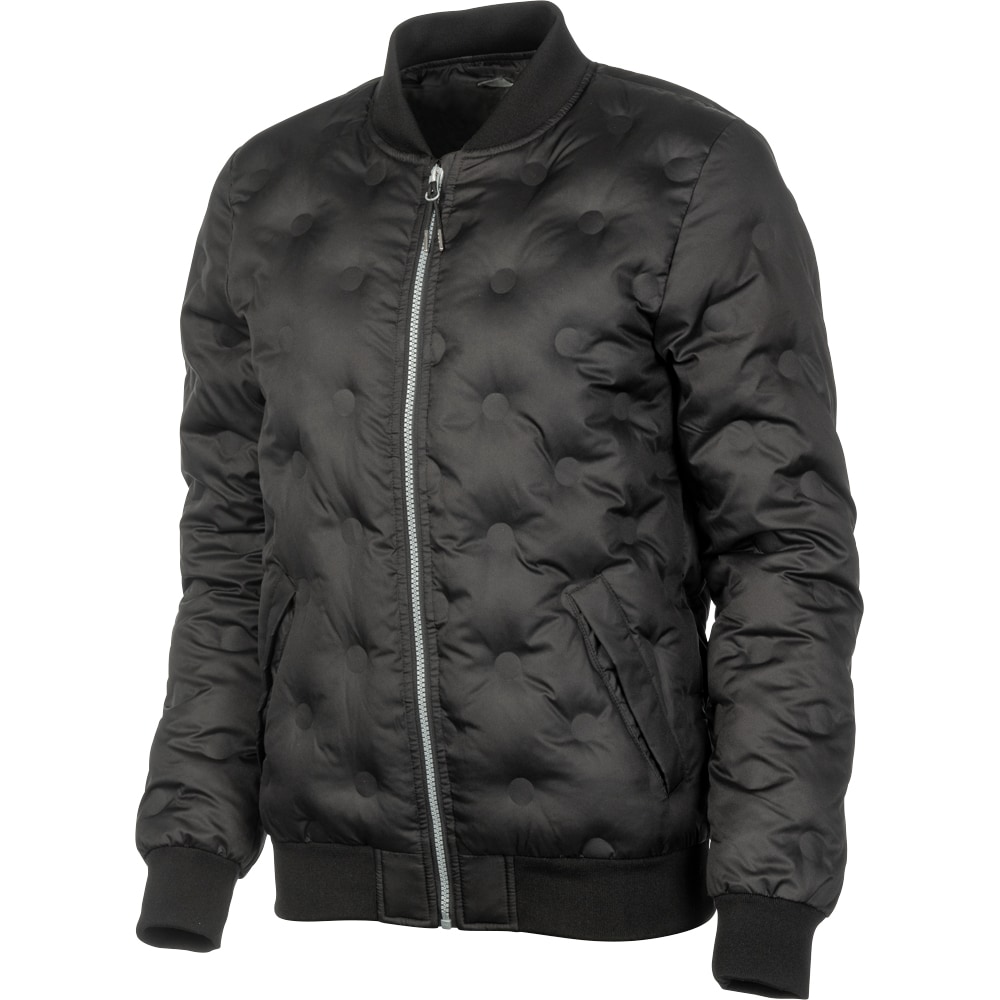Jacka med svetsat mönster, det vill säga utan sömmar i kvilten. Två fickor fram. Ribbad mudd i ärmslut och krage.