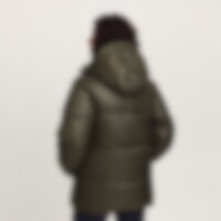 Sportieve en warme winterjas met een glanzende afwerking. Vulling gemaakt van gerecycled polyester die eigenschappen heeft die dons nabootsen en een gevoel van dons geven.